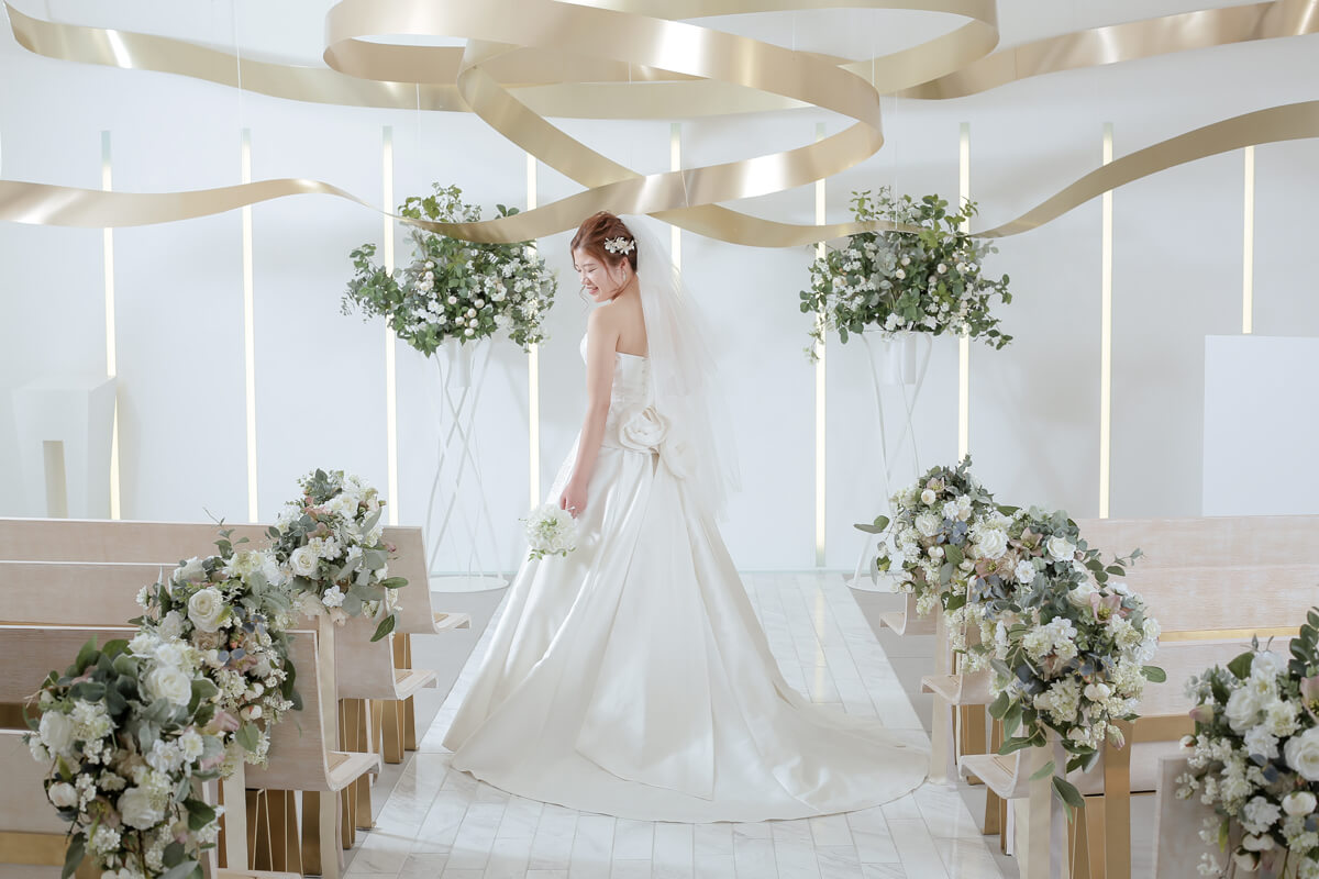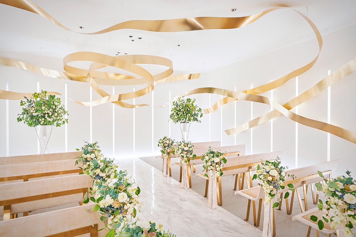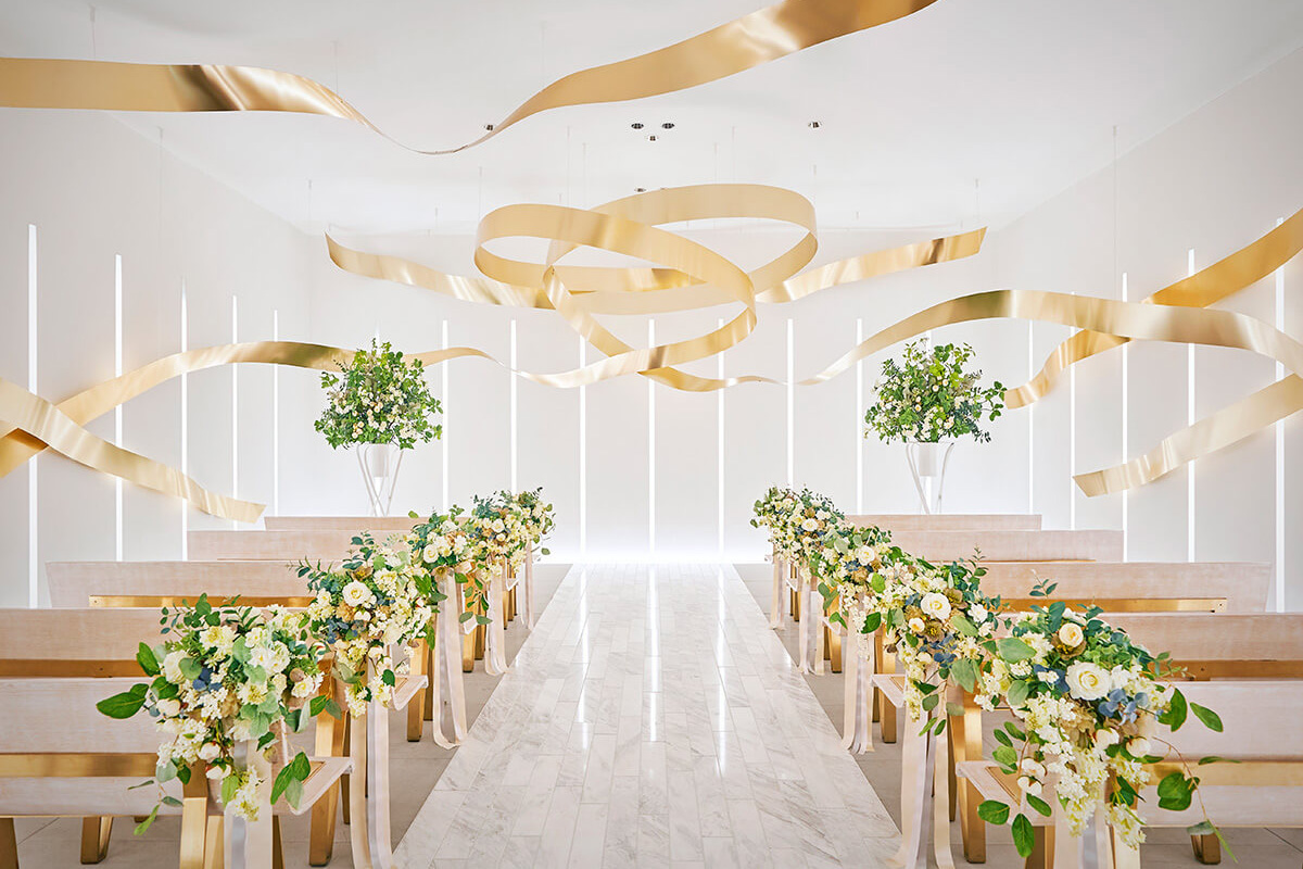 リボンをモチーフにした清潔感あふれるチャペルが魅力的です。