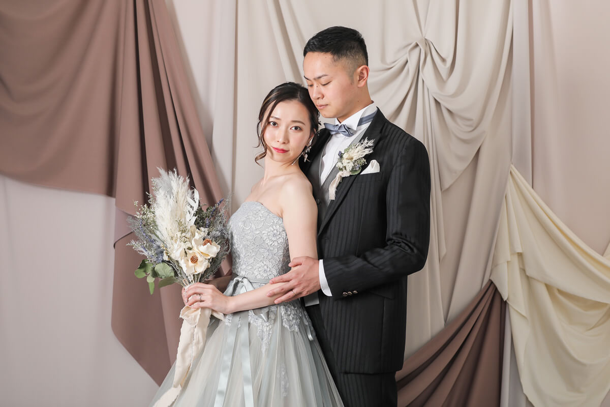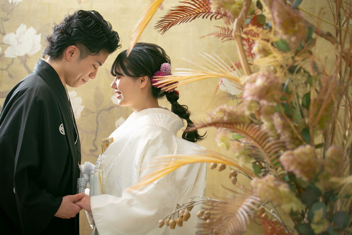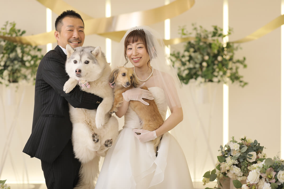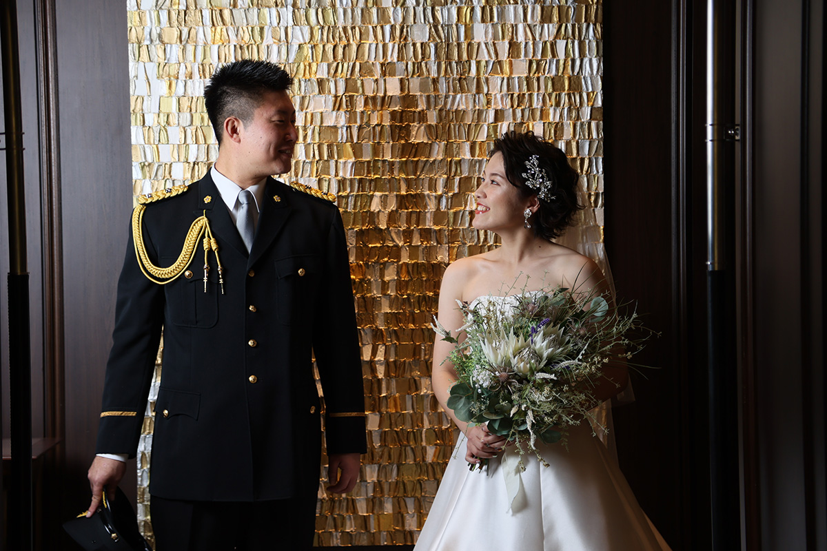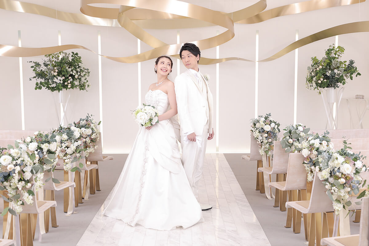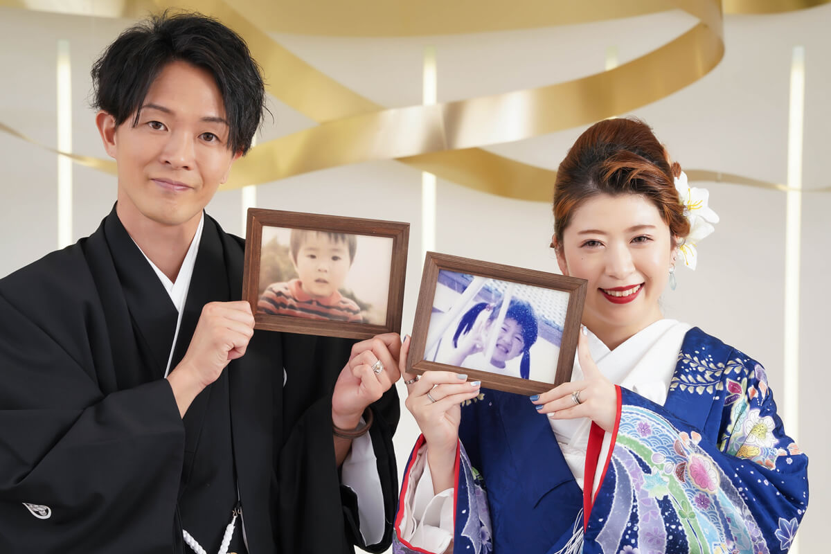 ゴールドに輝く美しいリボンがおふたりの写真を華やかに彩ります。