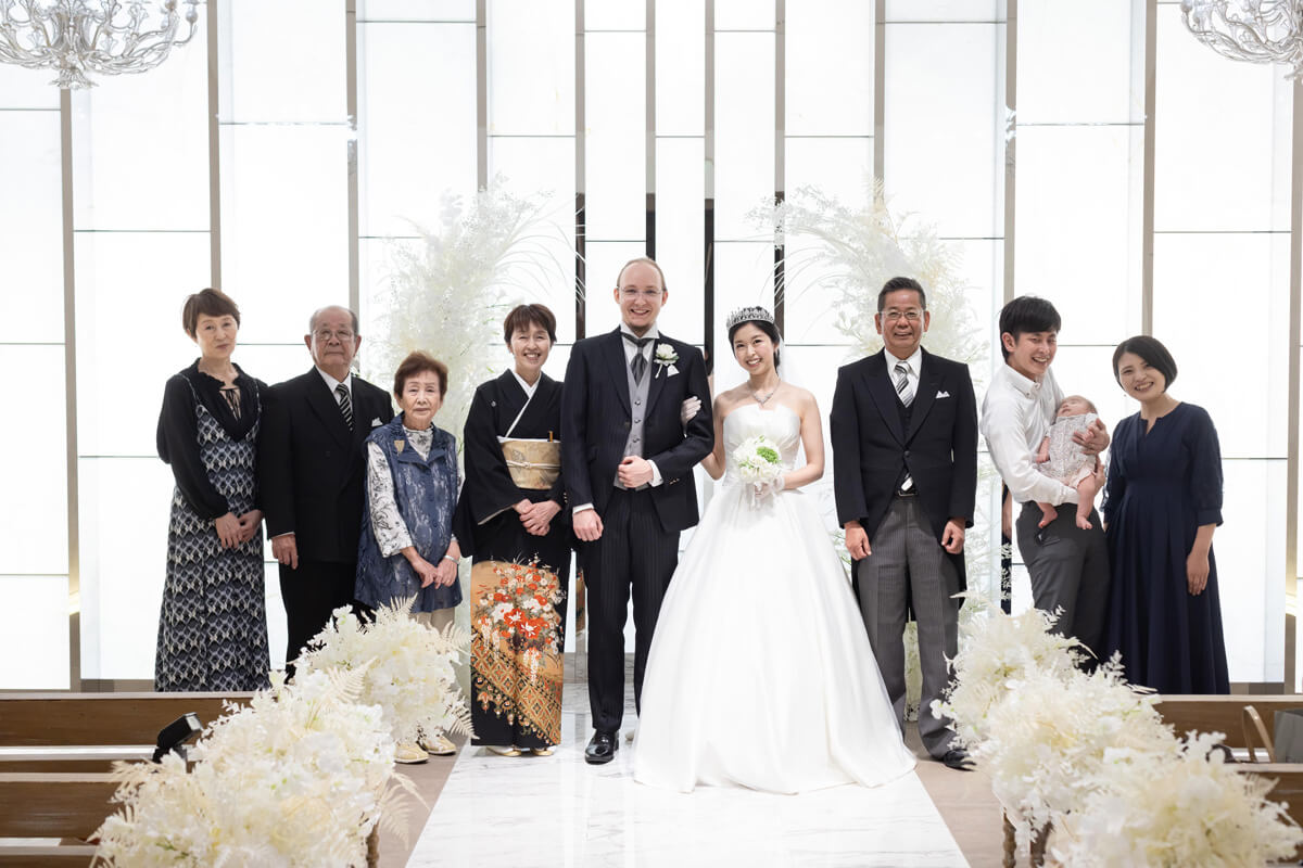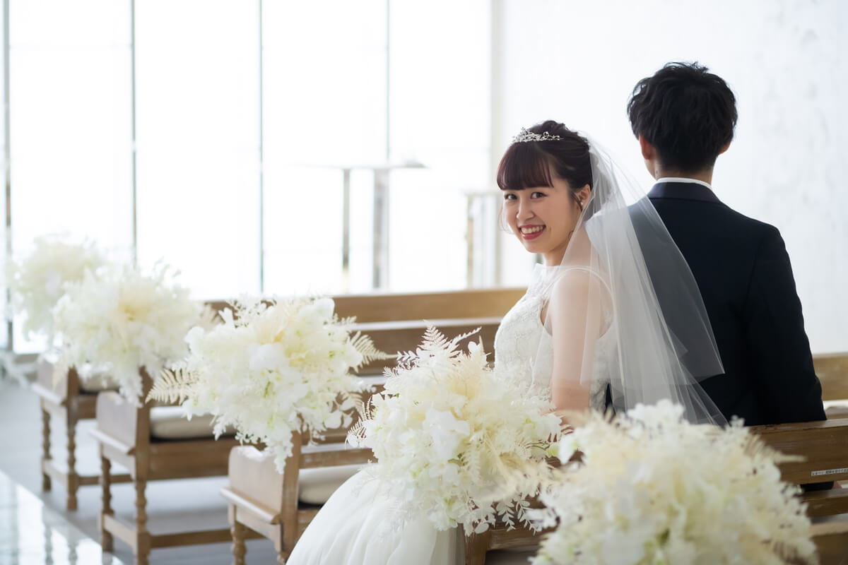 スワロフスキー製のシャンデリアが輝く、クラシック&モダンなチャペル。