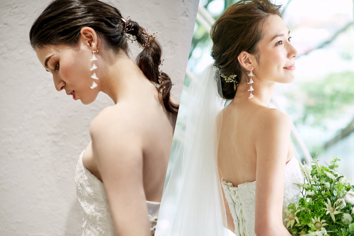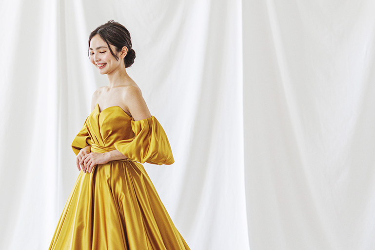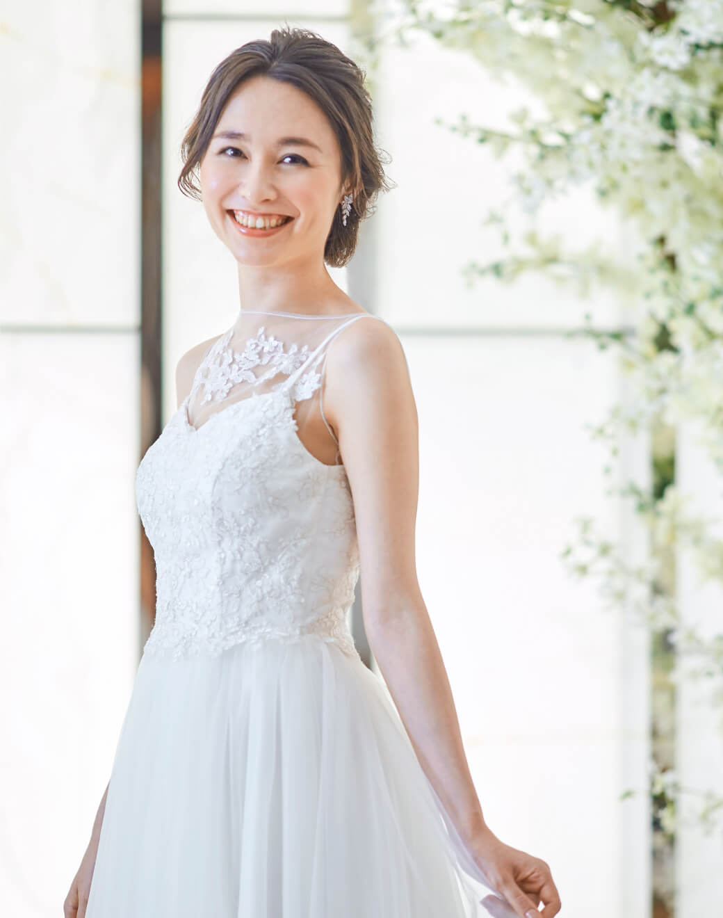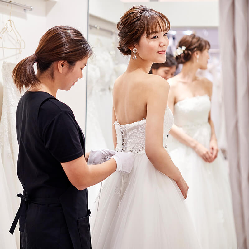 花嫁様をもっとも美しく彩り、演出するウェディングドレス。海外の有名なブランドのインポートドレスも直接海外まで買い付けに行き、ご用意しております。