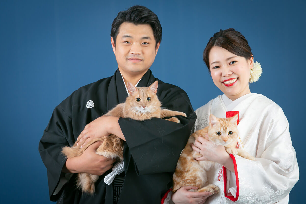 これまでに猫、ウサギ、ペンギン、フェレットなどが一緒に撮影されています。素敵なペットちゃんのご参加をお待ちしています。 -