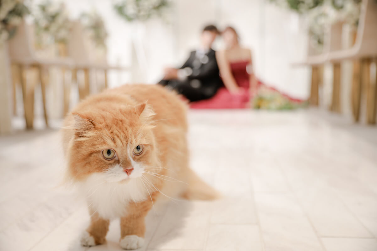 A.ゲストの方が参加される場合は招待の時から入念にされると良いと思います。ペットが参加することを伝えたり、アレルギーの方がいないかなどをしっかり確認して、素敵なウェディングフォトを実現させてください。その他不安な点があればスタッフがいつでもアドバイスいたしますので、お気軽にご相談ください。