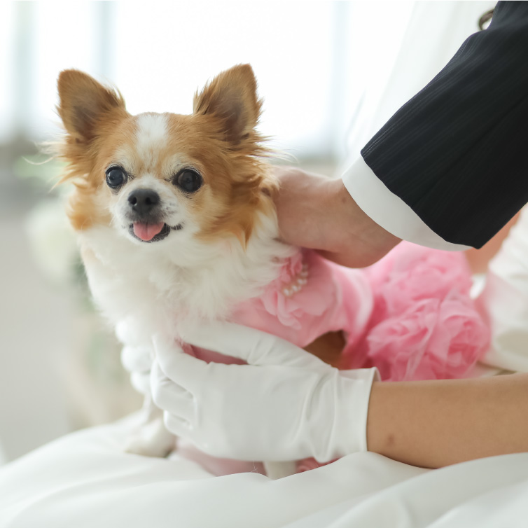 お揃いの蝶ネクタイやベールなど、ペットの衣裳の持ち込みOK!