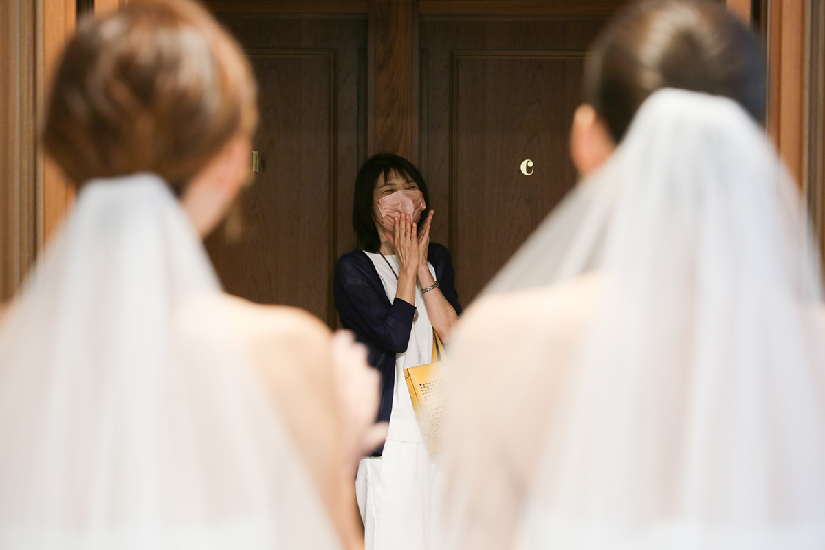 A.オプション「セレモニーフォト」+22,000円(税込)を追加いただけたら、入場シーンや指輪交換、誓約のシーンも撮影いただけます。