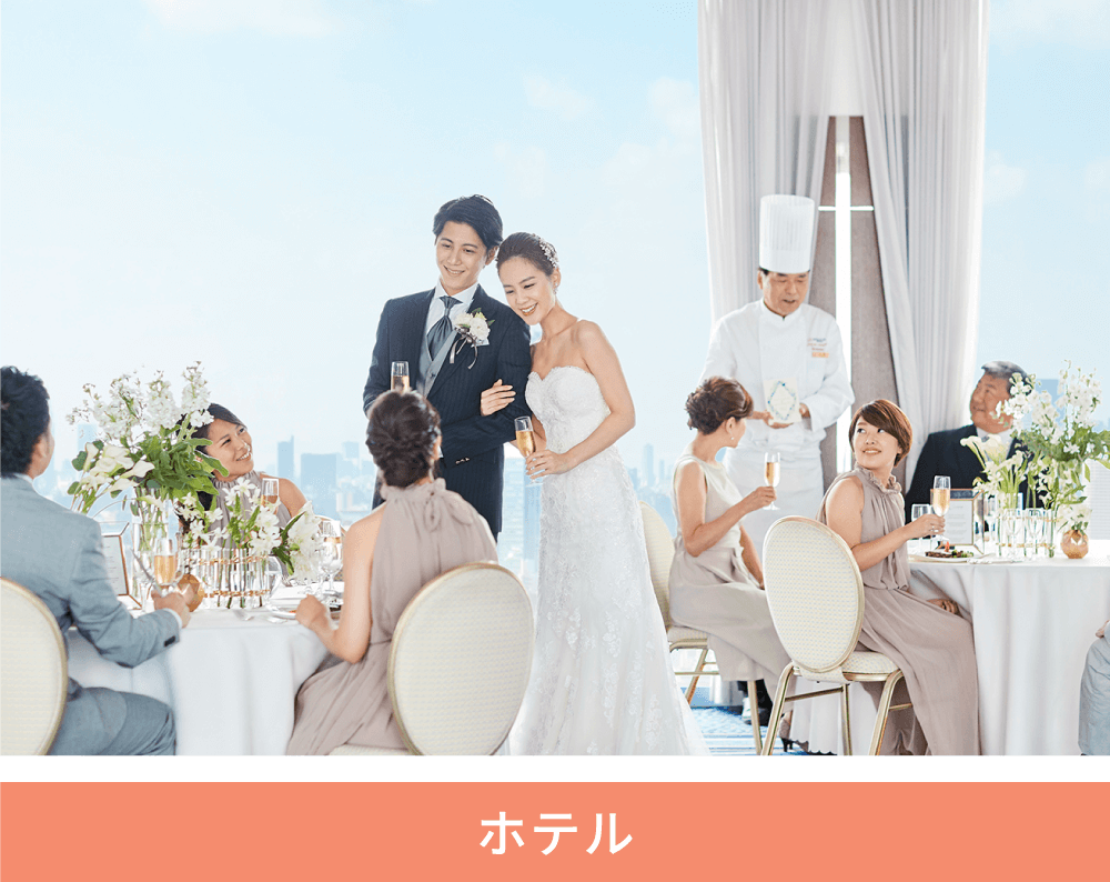 絶景リゾートで誰にも邪魔されないふたりだけのウエディング。会食は親族が集まりやすい地元で行えば、移動の負担も最小限におさえられます。国内外のリゾートや全国各地の直営・提携会場から、ぴったりなロケーションをご提案。おいしい料理のおもてなしもご安心ください。