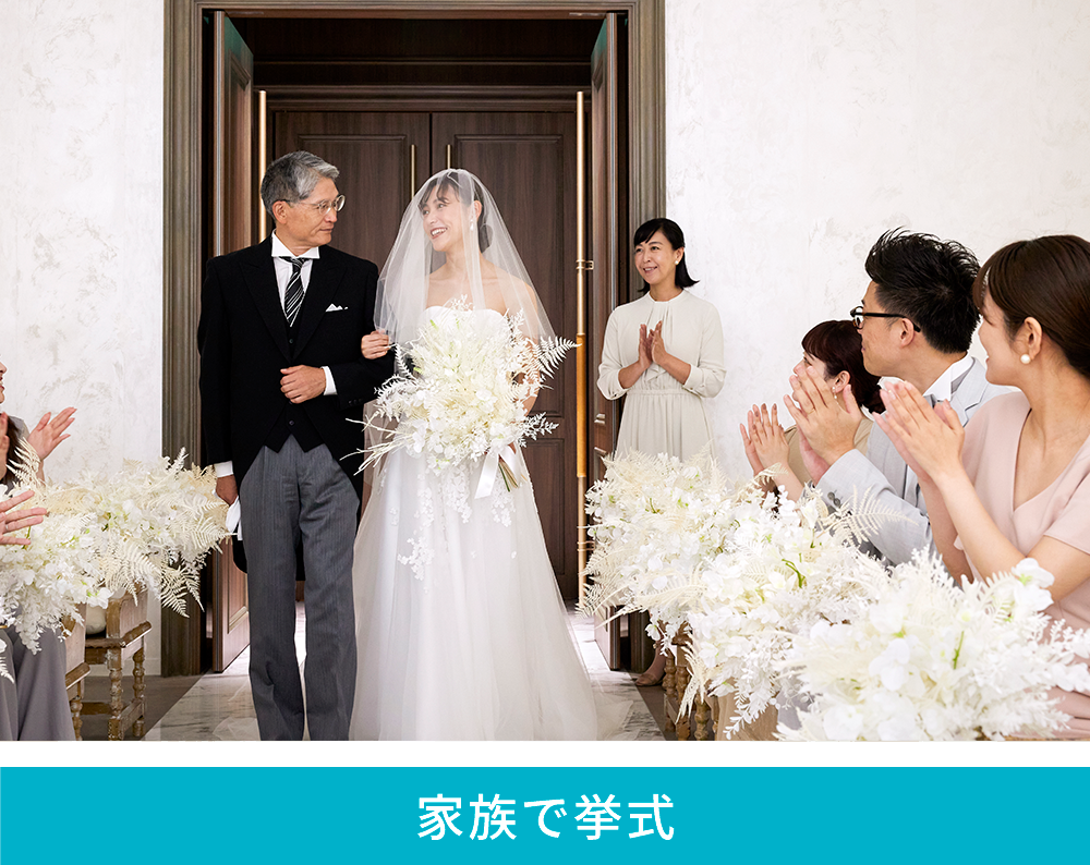 早くふたりの晴れ姿を家族に見せたい、今のタイミングを逃したくない…それなら、まずは家族のみで挙式して、友人たちとのパーティは後日行うスタイルがおすすめ。パーティの日程はコロナの状況を見ながら決めることができ、挙式から1年間は何度でも無料で変更可能です。