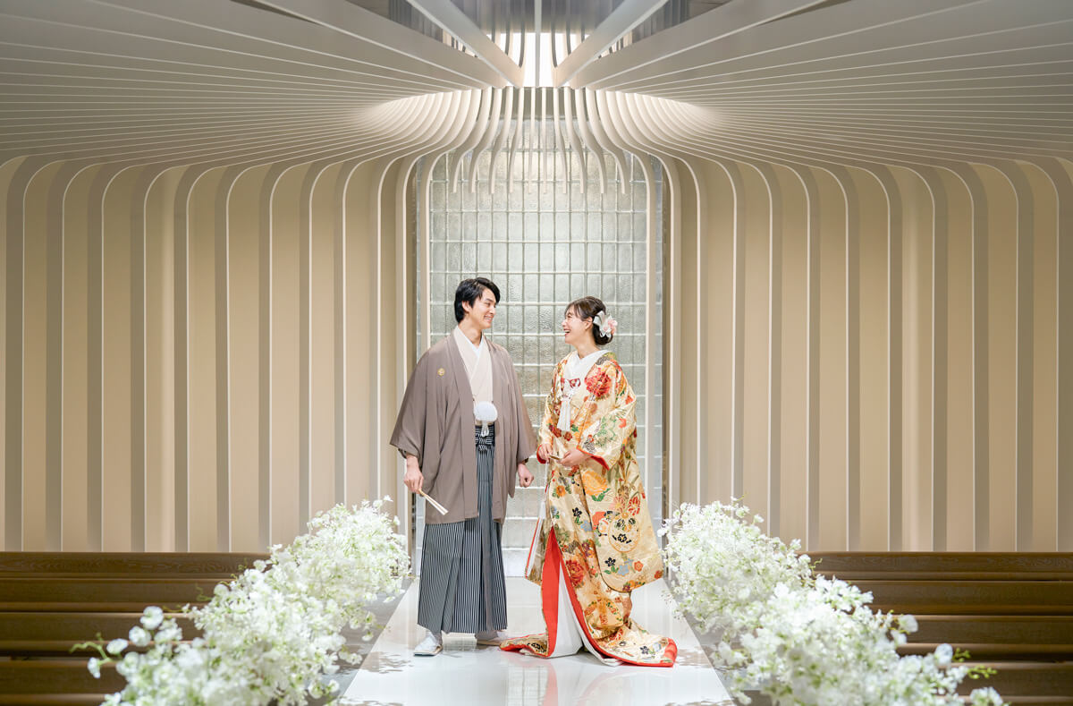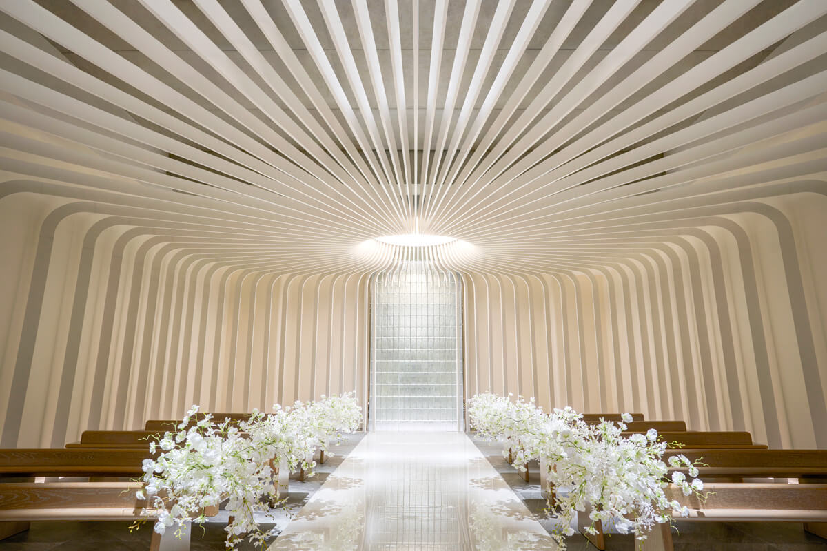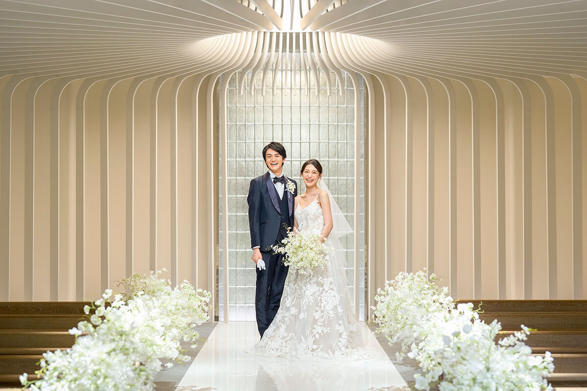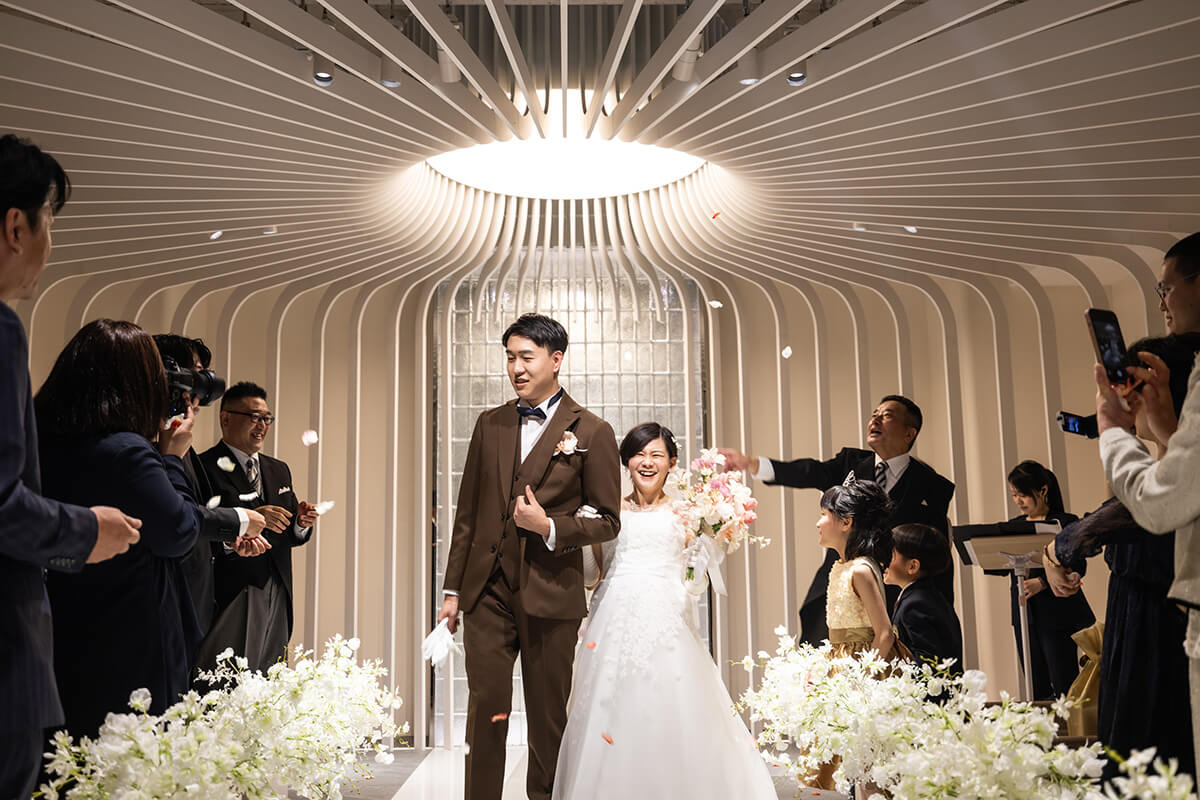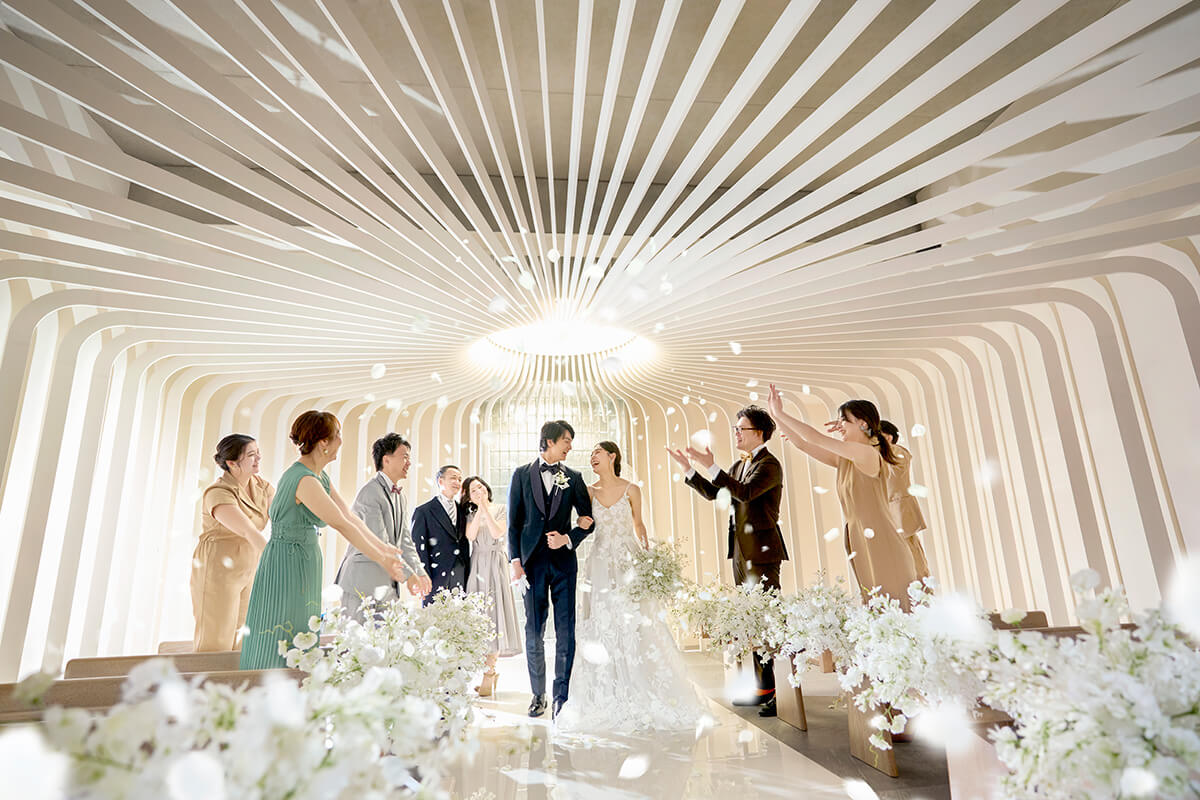 天井から降り注ぐ光に導かれて歩み出し、ふたりを優しく照らします。