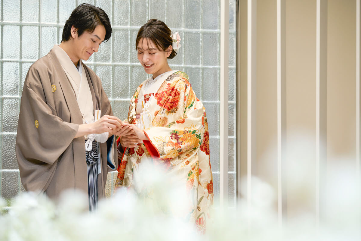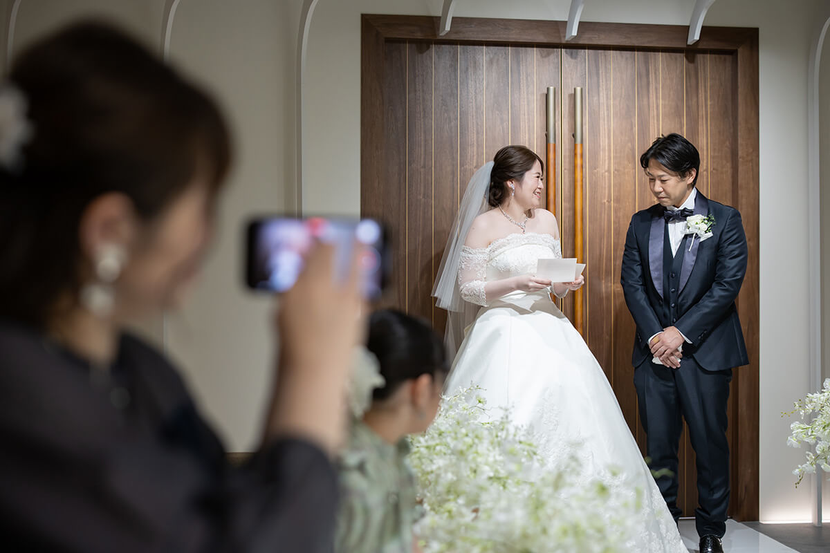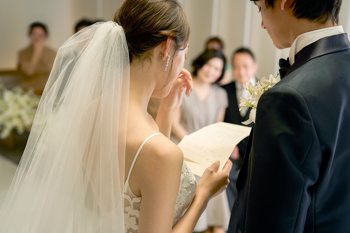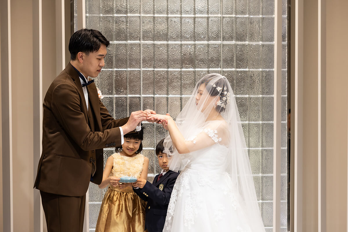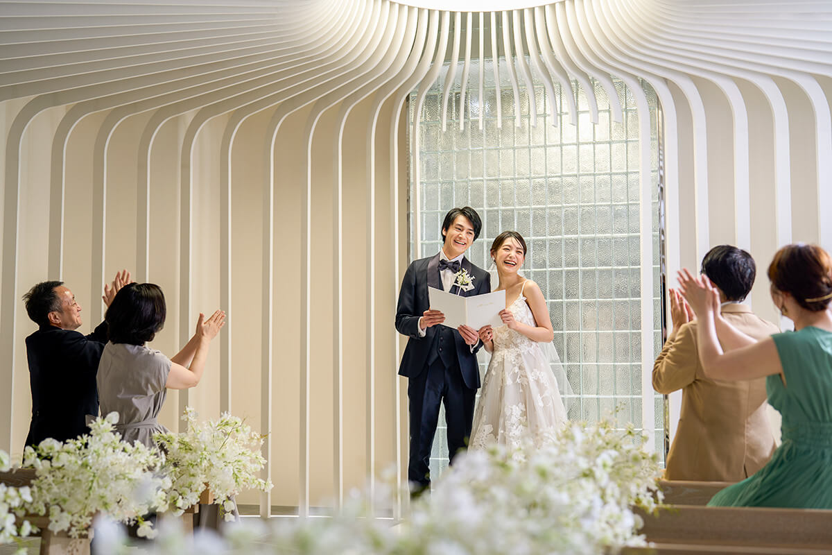天井から降り注ぐ光に導かれて歩み出し、ふたりを優しく照らします。