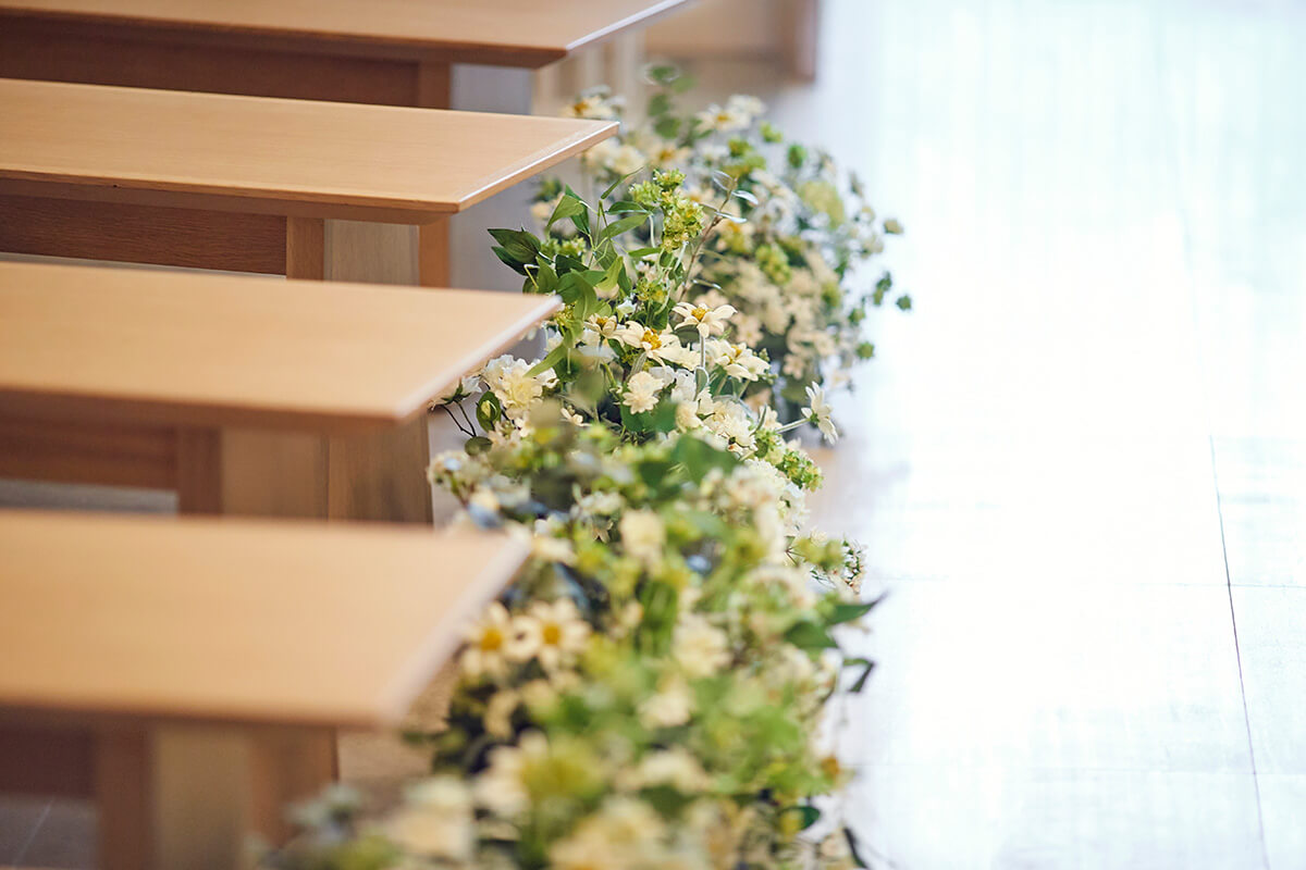 丸の内駅すぐの場所に位置し、木のぬくもりが感じられる温かなチャペル。