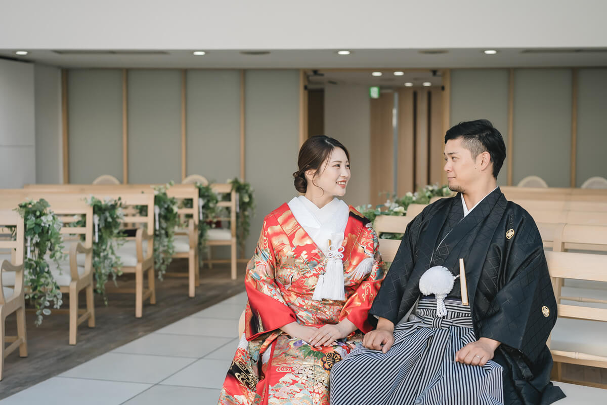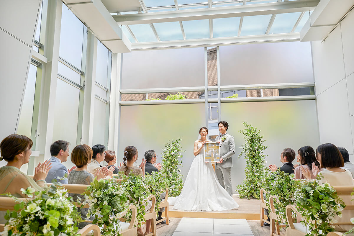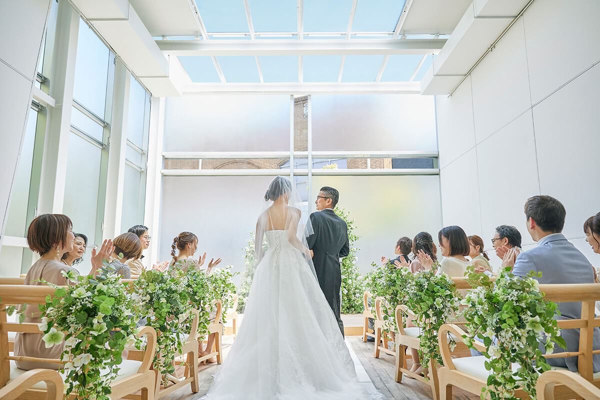 まばゆい白を基調にしておふたりの純粋な想いを形にしたチャペル。
