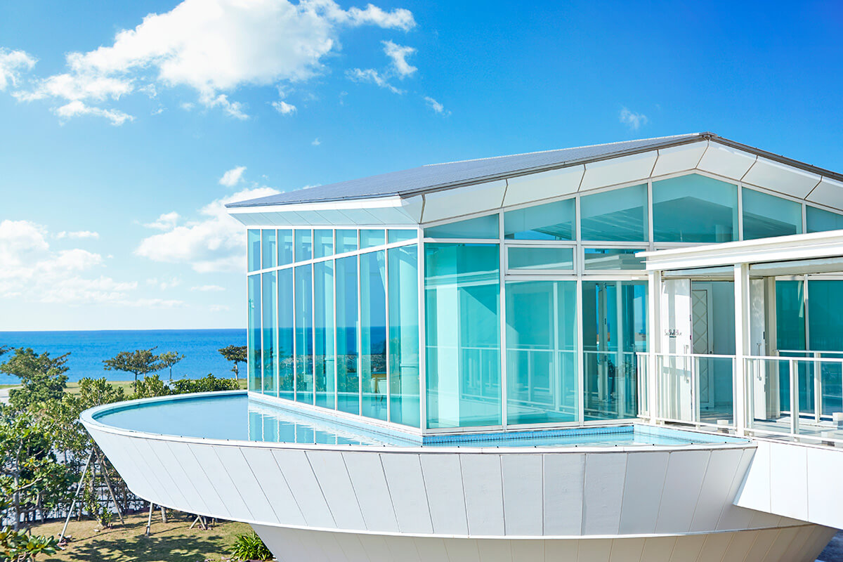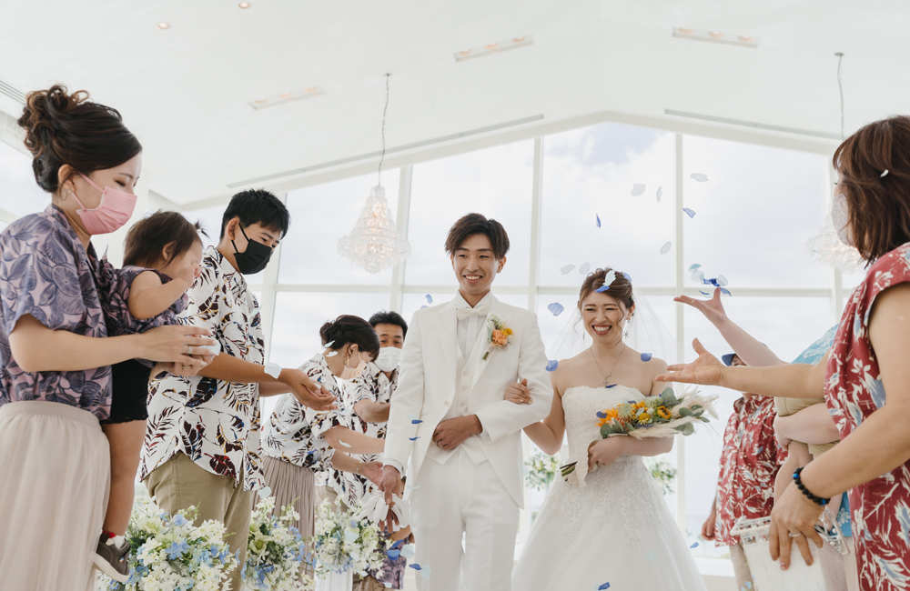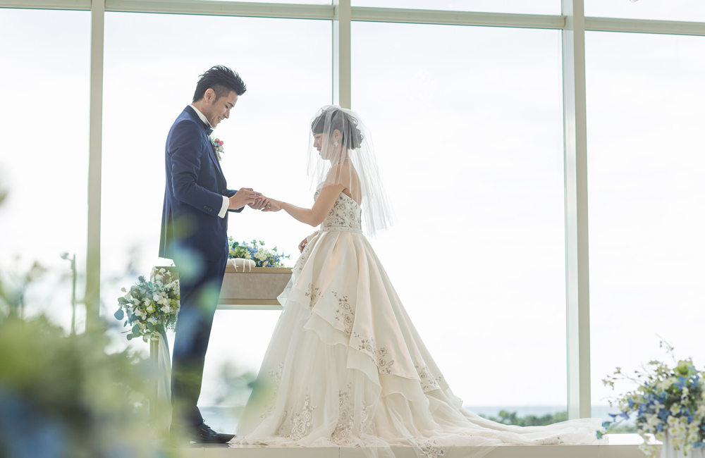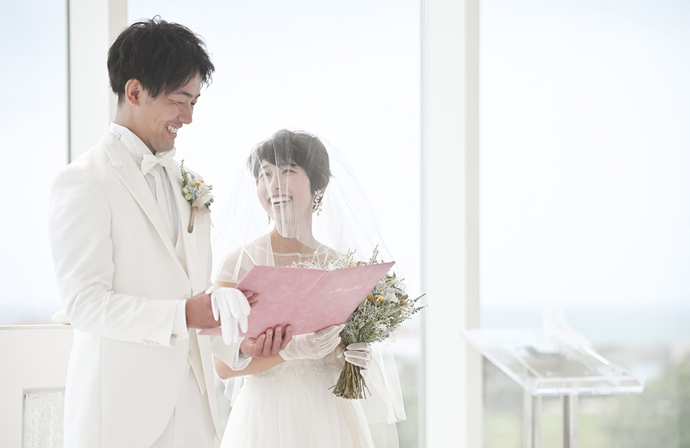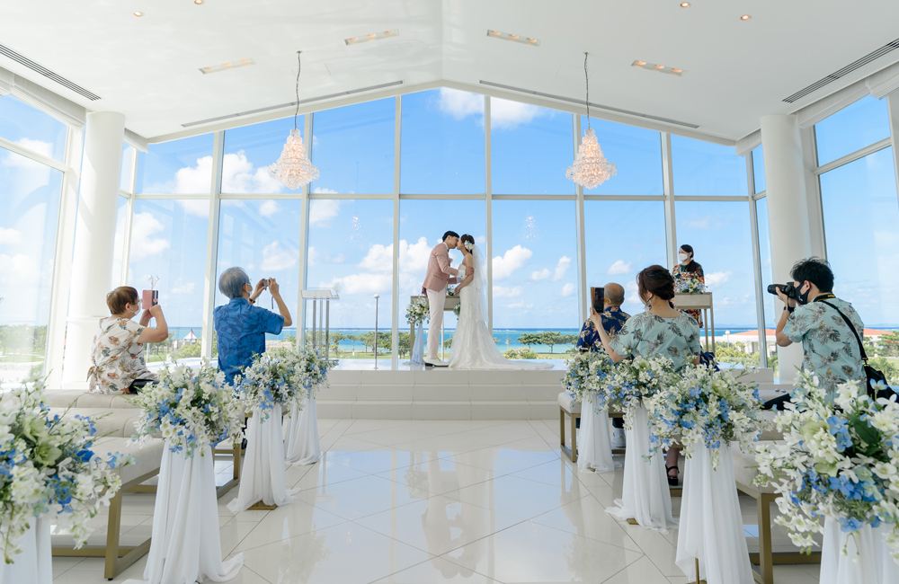 美々ビーチと大きな空が広がる白亜のチャペル。