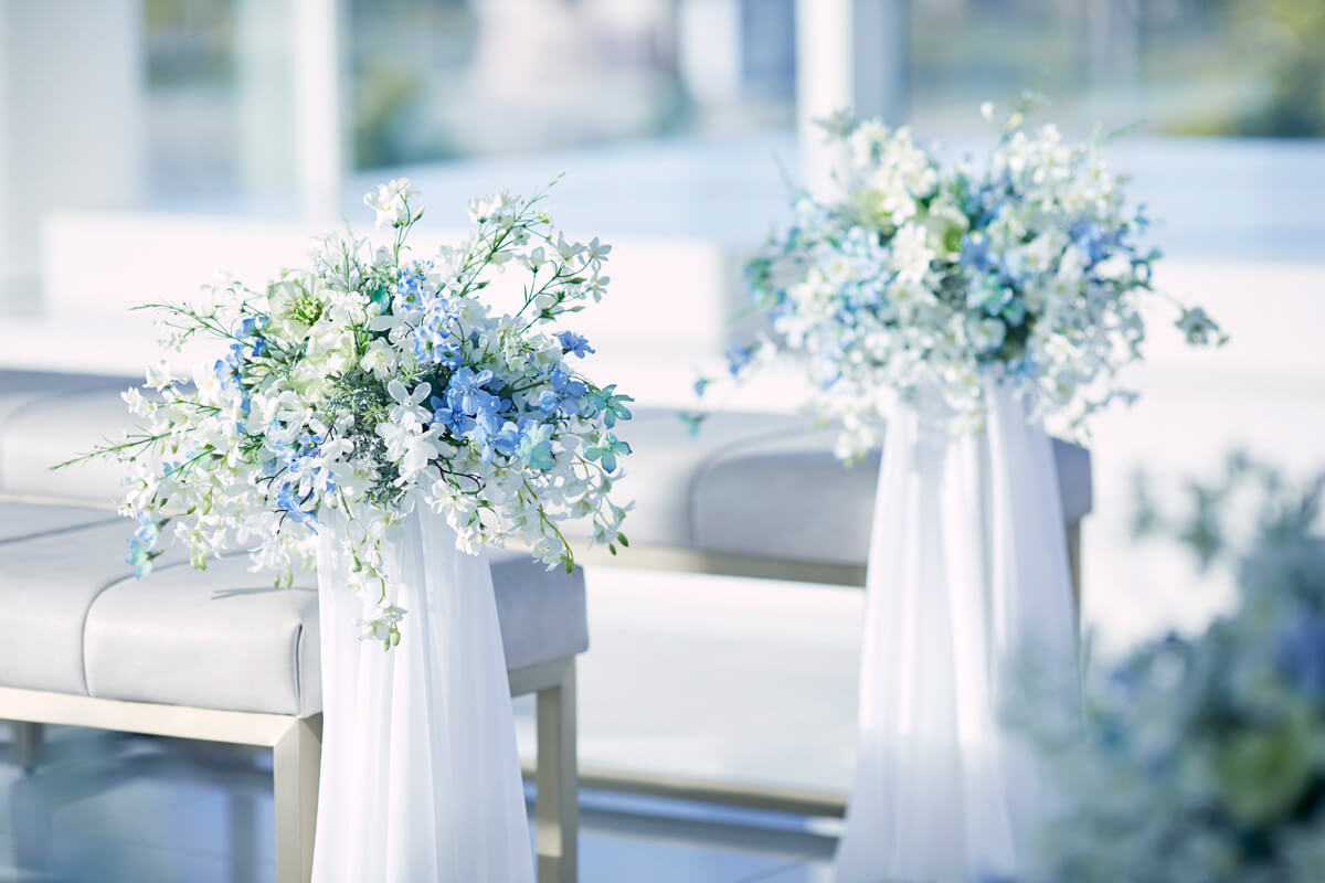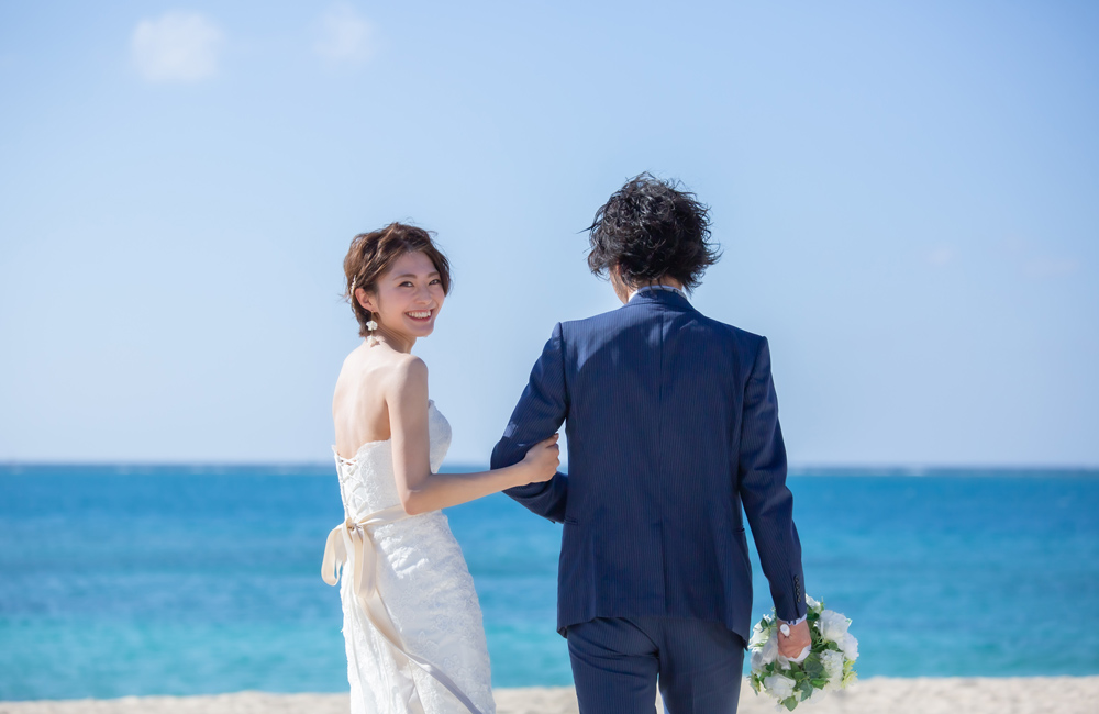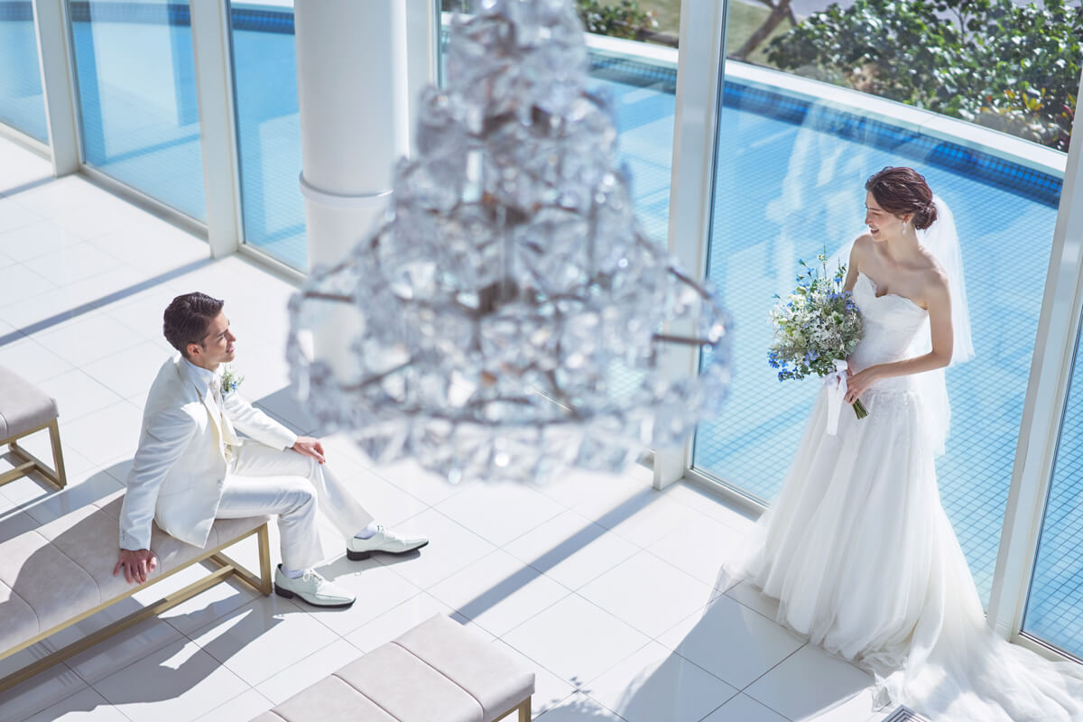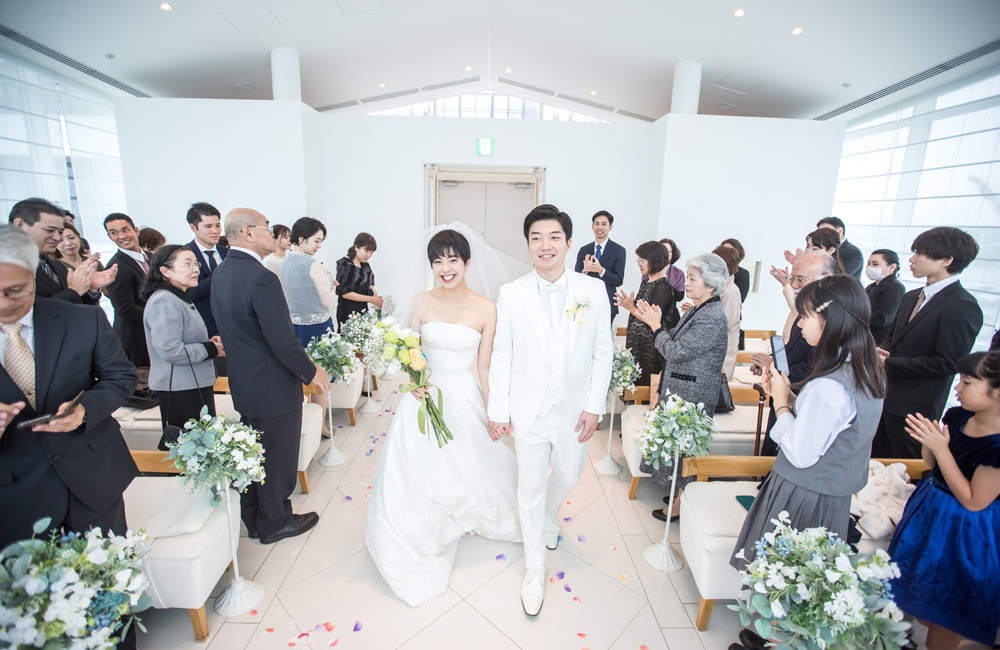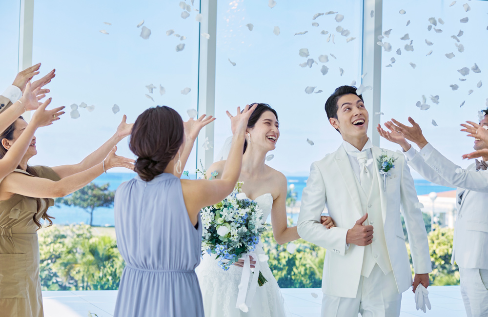 美々ビーチと大きな空が広がる白亜のチャペル。