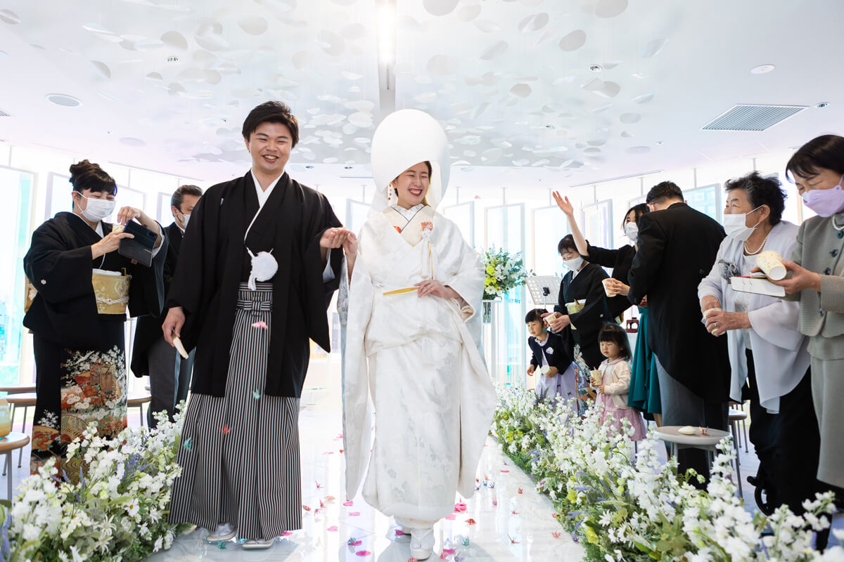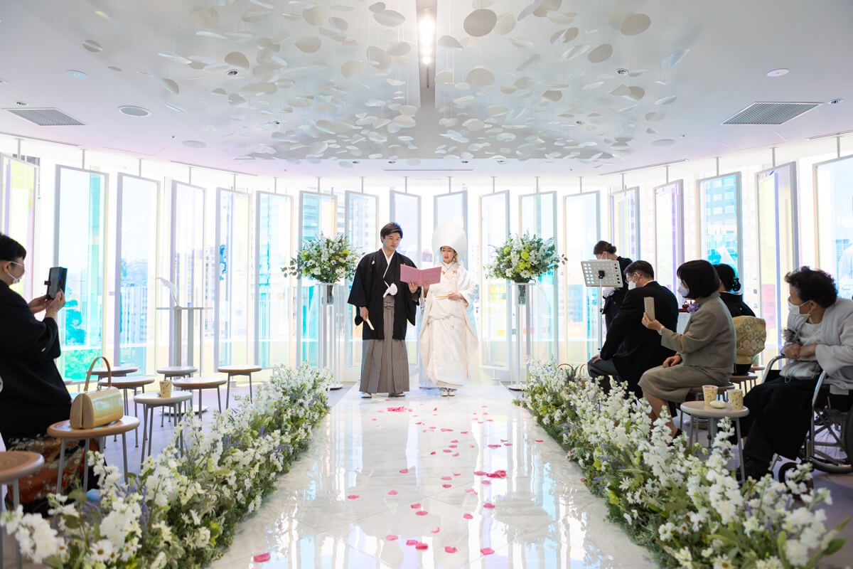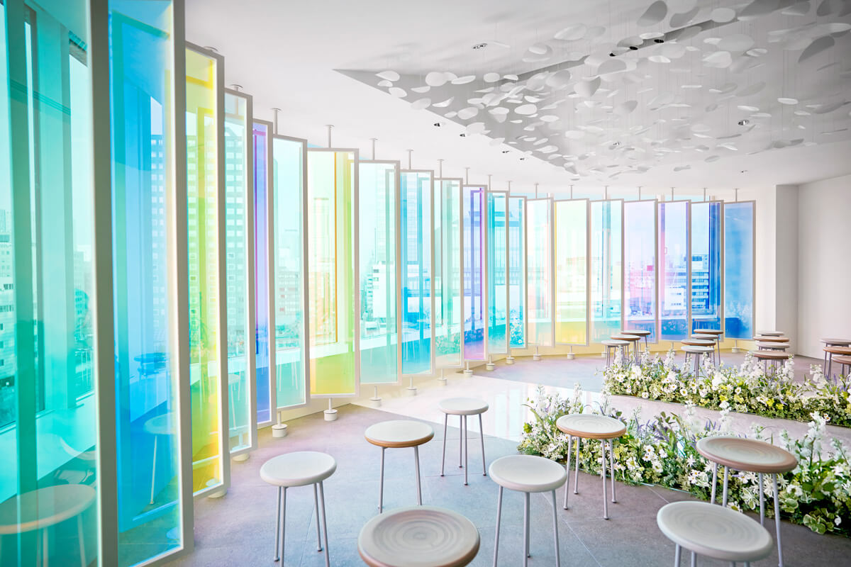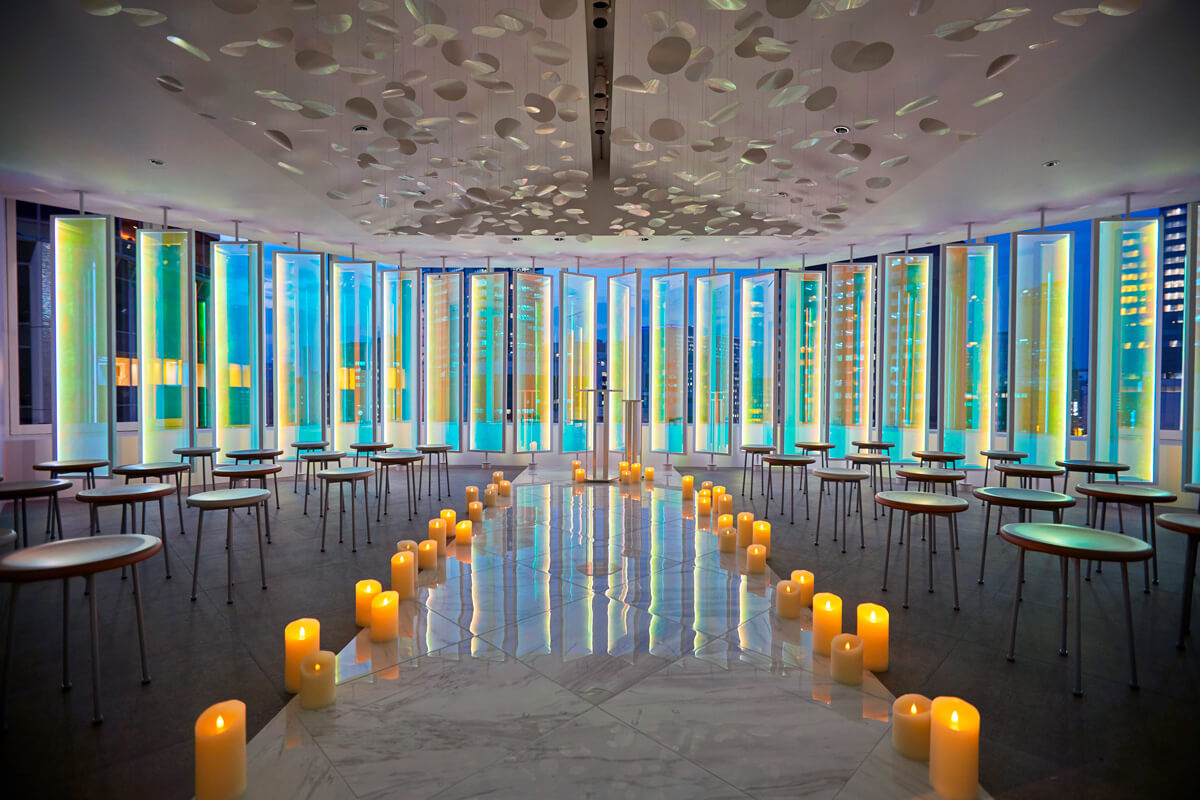 “プリズム”をコンセプトに空間全体を色と光が交わる幻想的なチャペル。