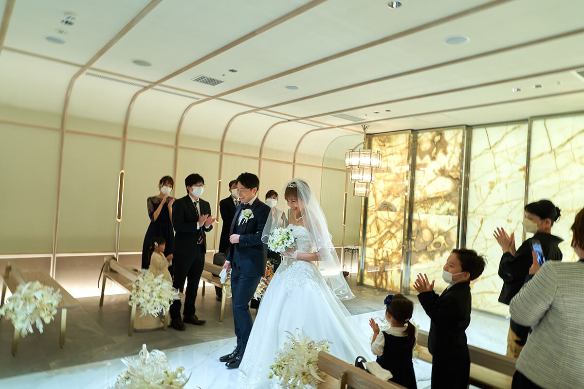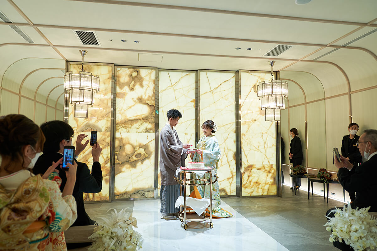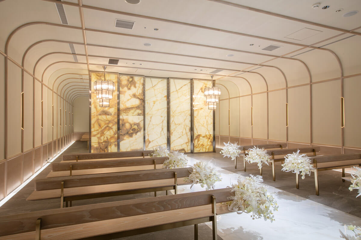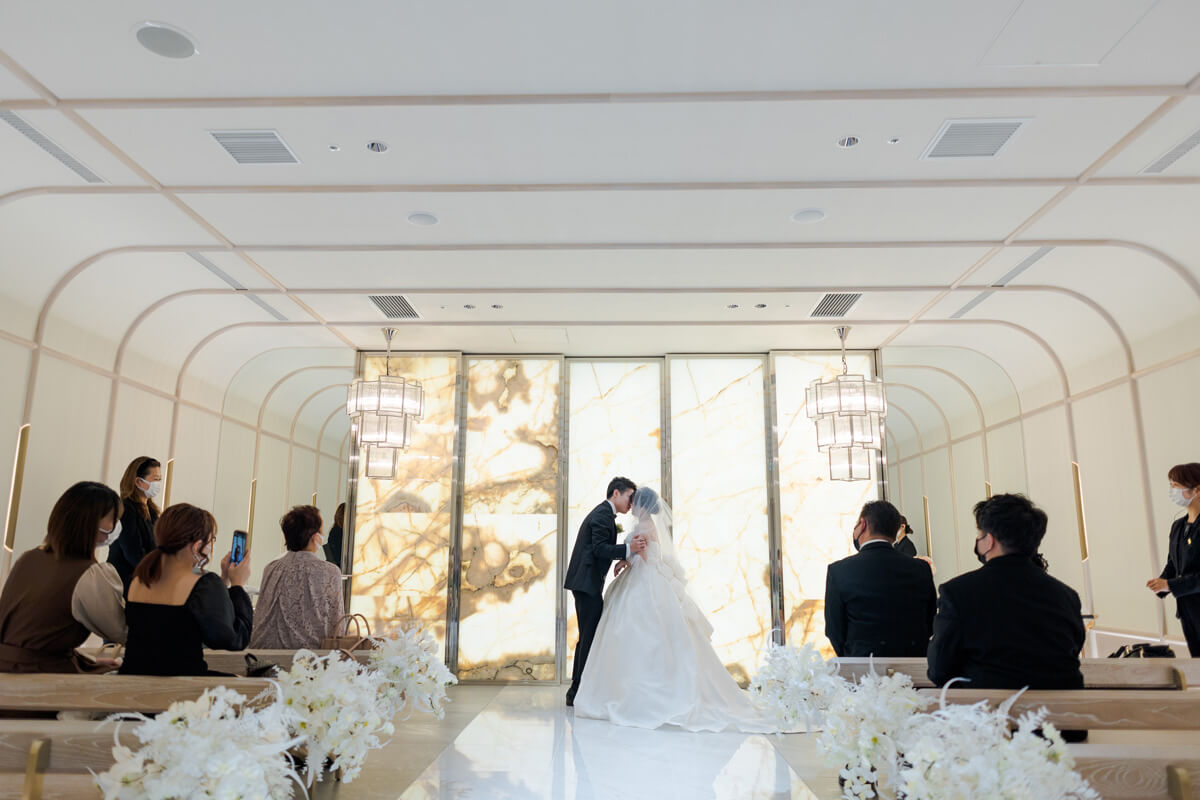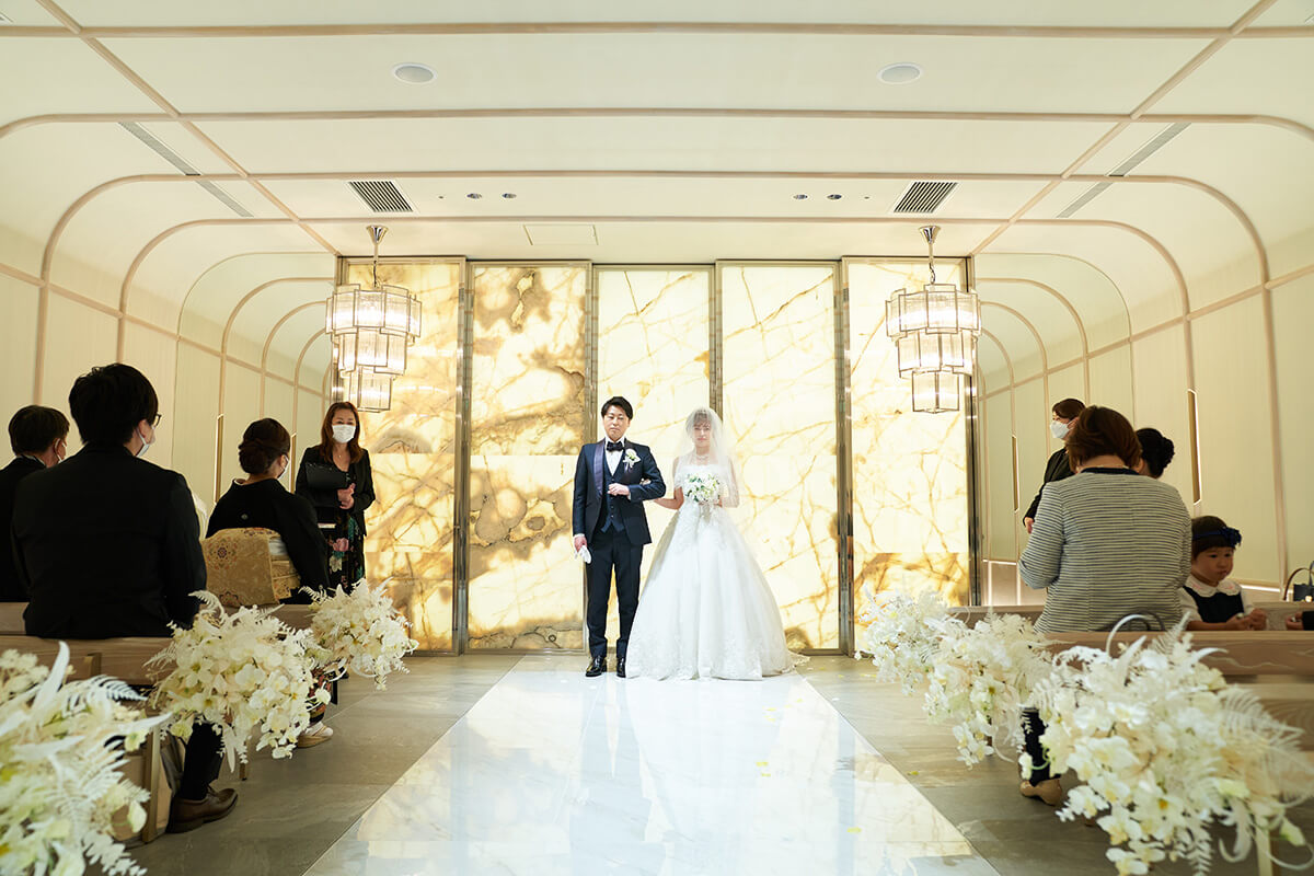 バージンロードの先のオニキスが海の宝石のように輝きます。