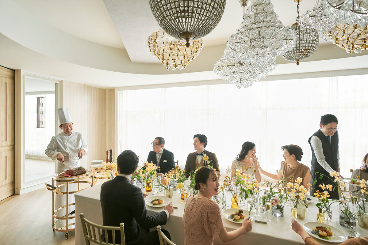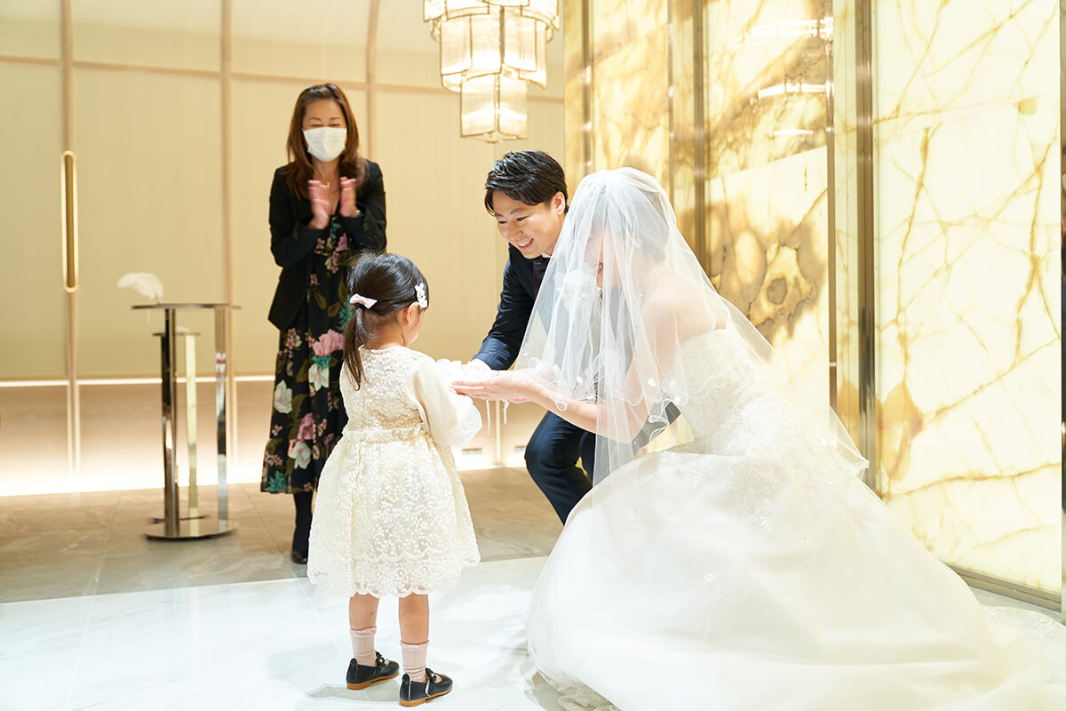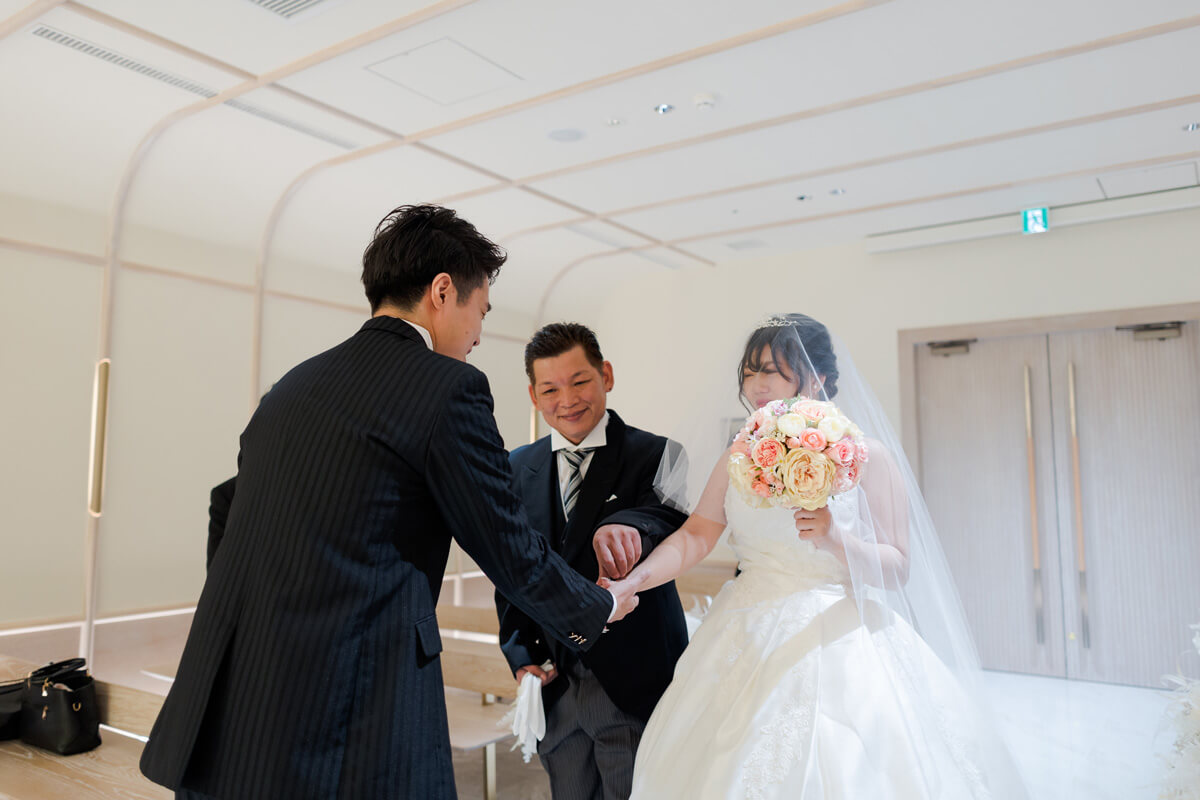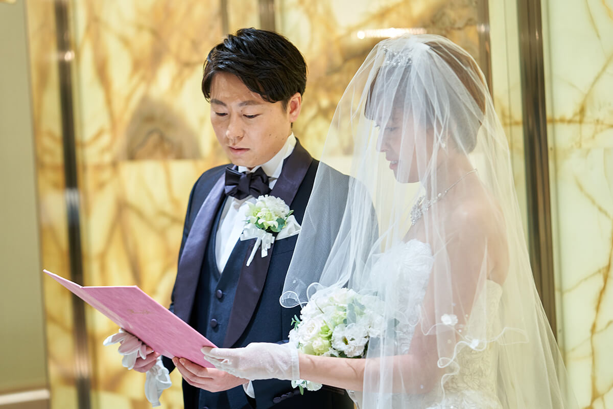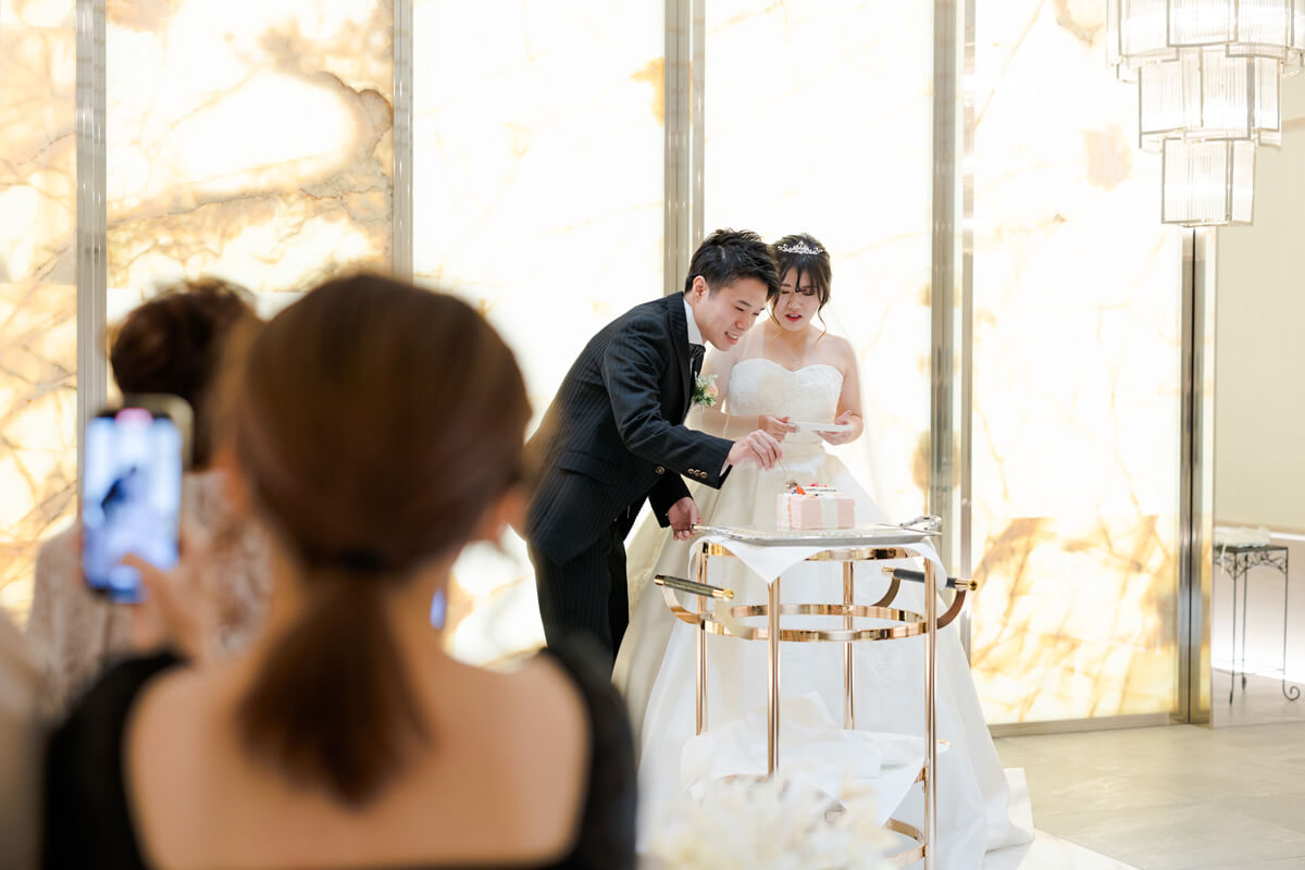 バージンロードの先のオニキスが海の宝石のように輝きます。