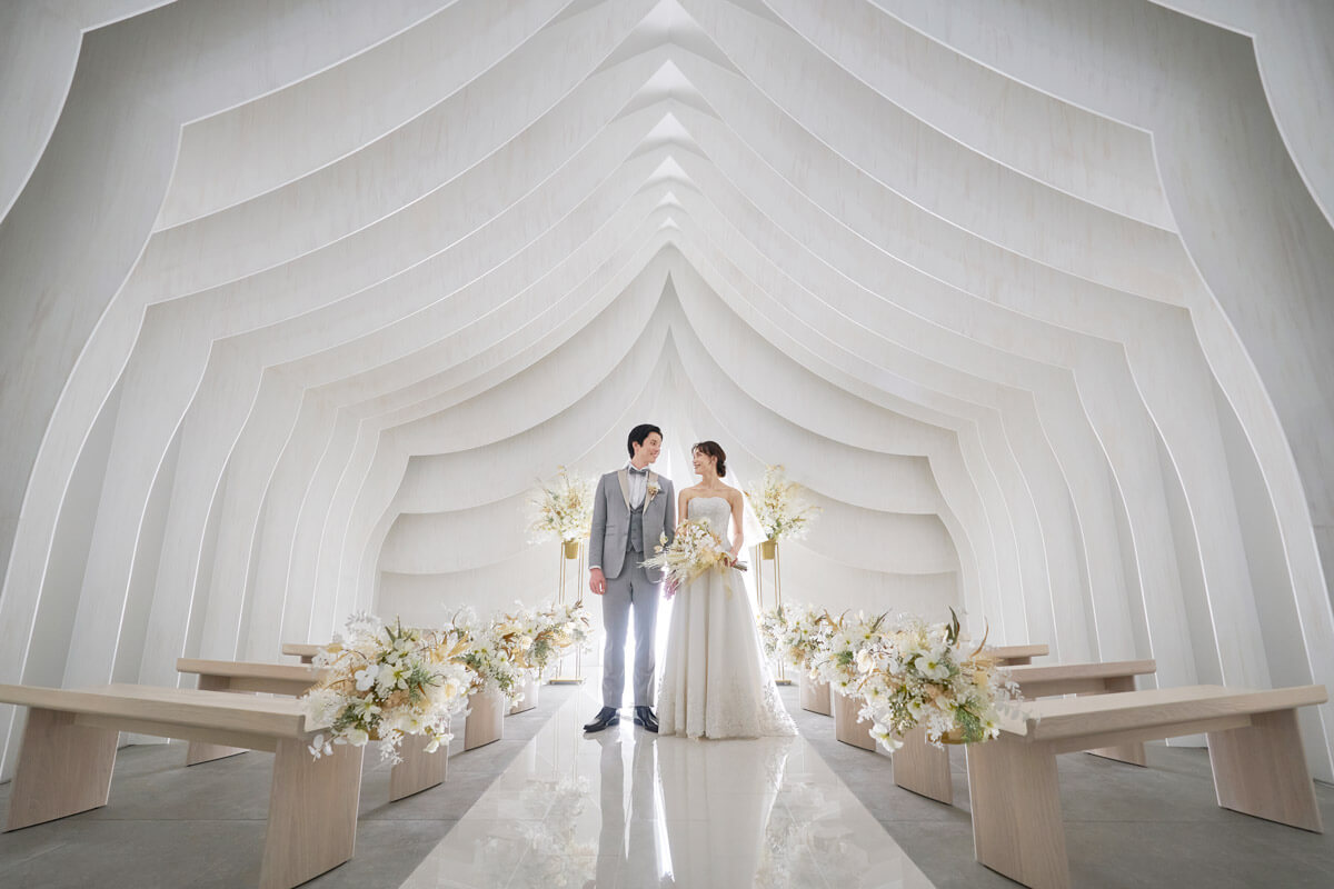 自然光を取り入れ、やわらかな光に包まれたチャペル。