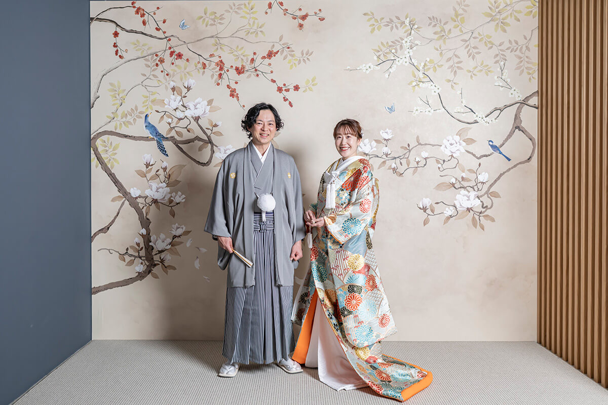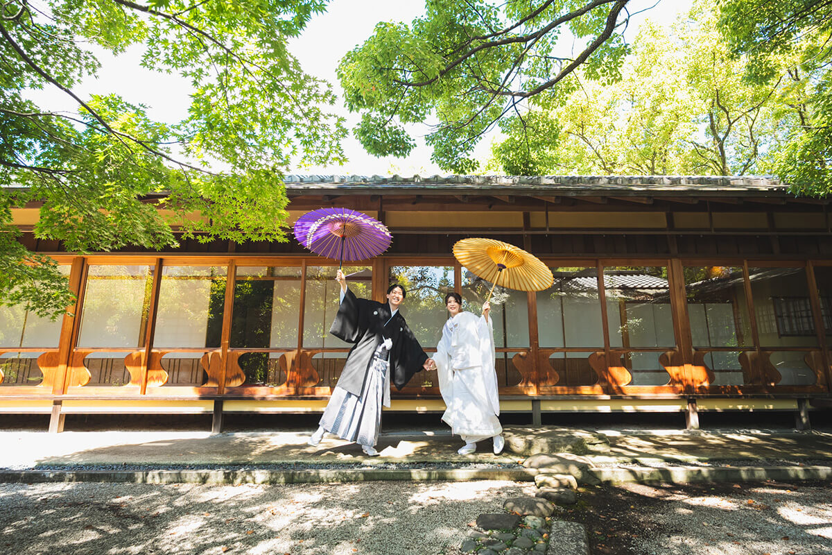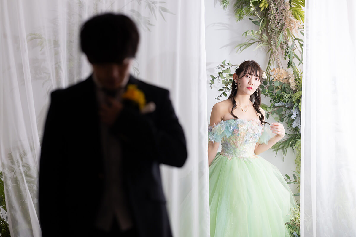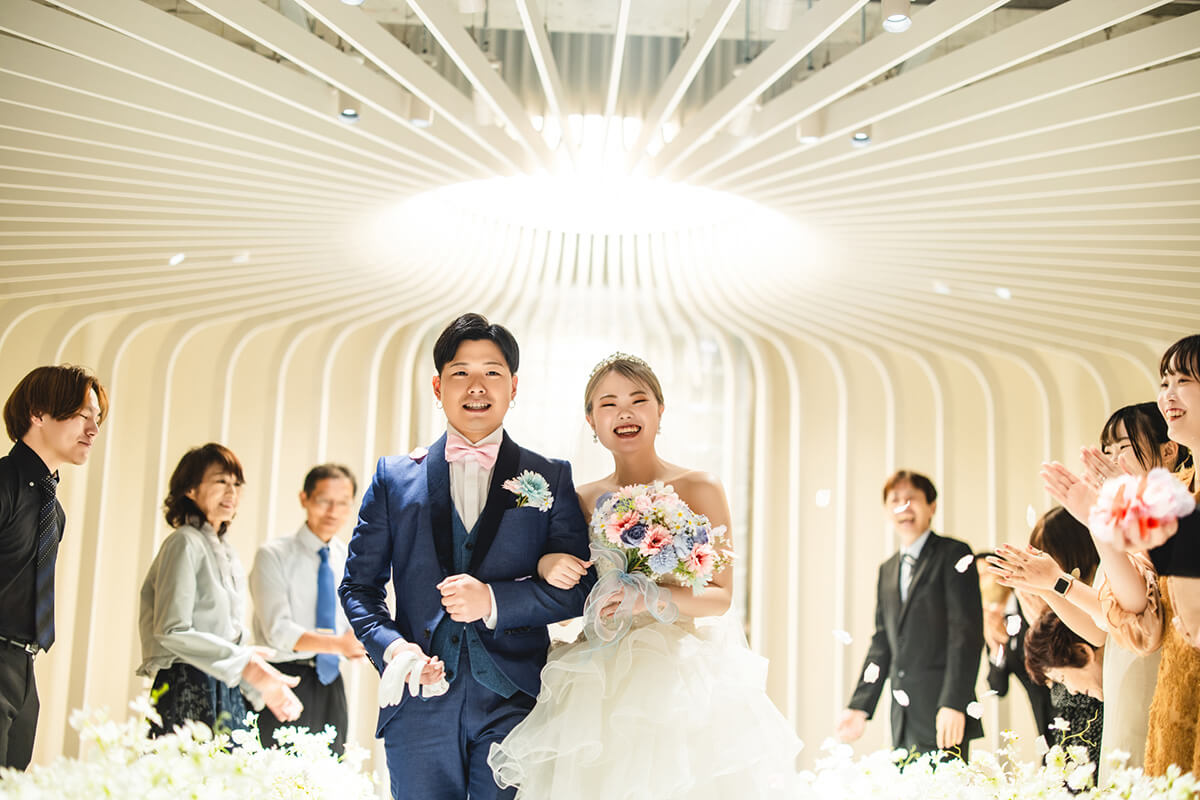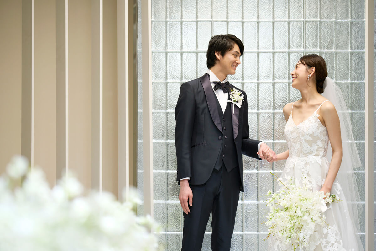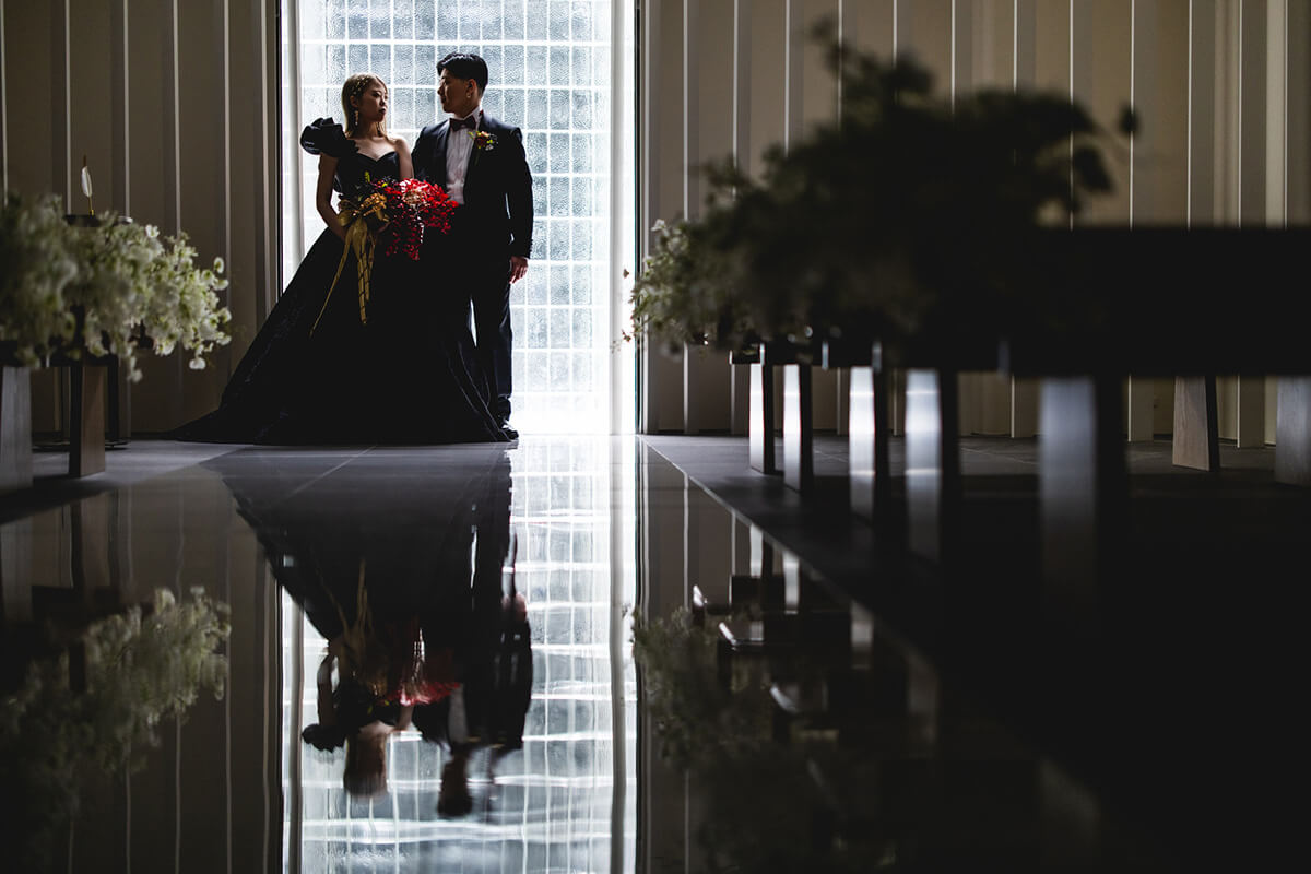 天井から降り注ぐ光に導かれて歩み出し、ふたりを優しく照らします。