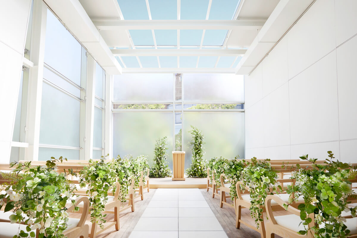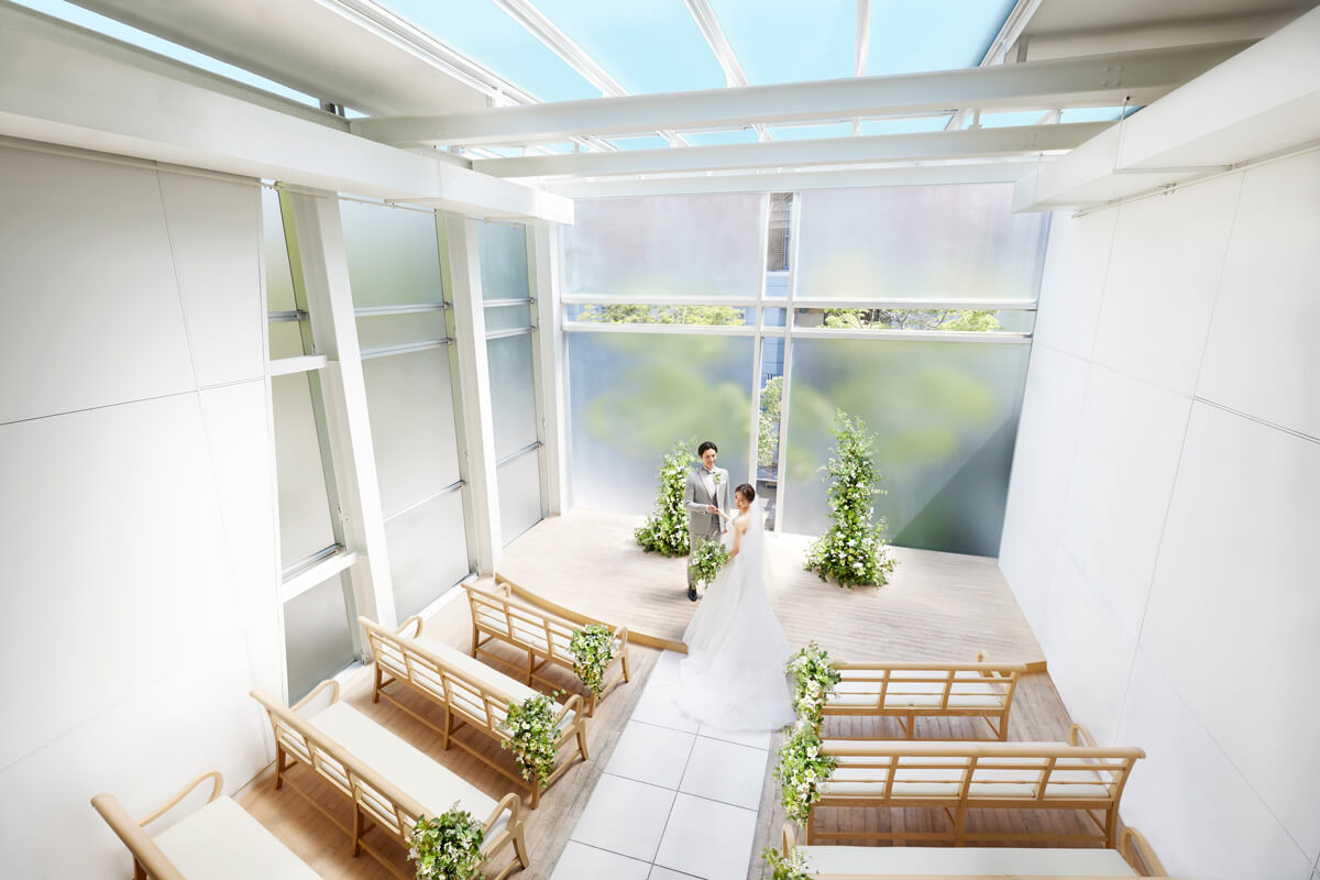 まばゆい白を基調にしておふたりの純粋な想いを形にしたチャペル。