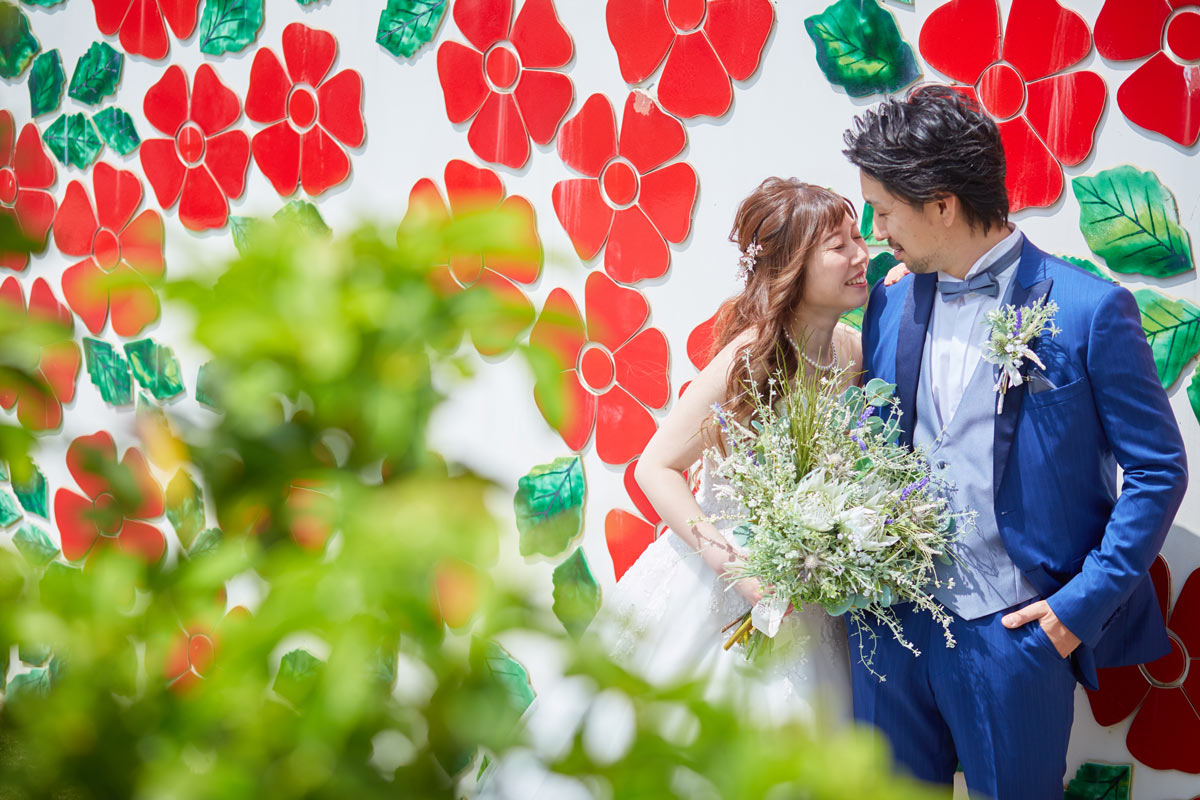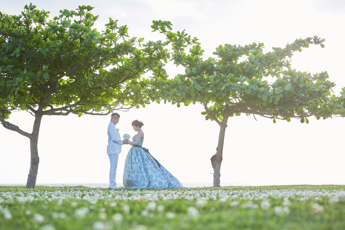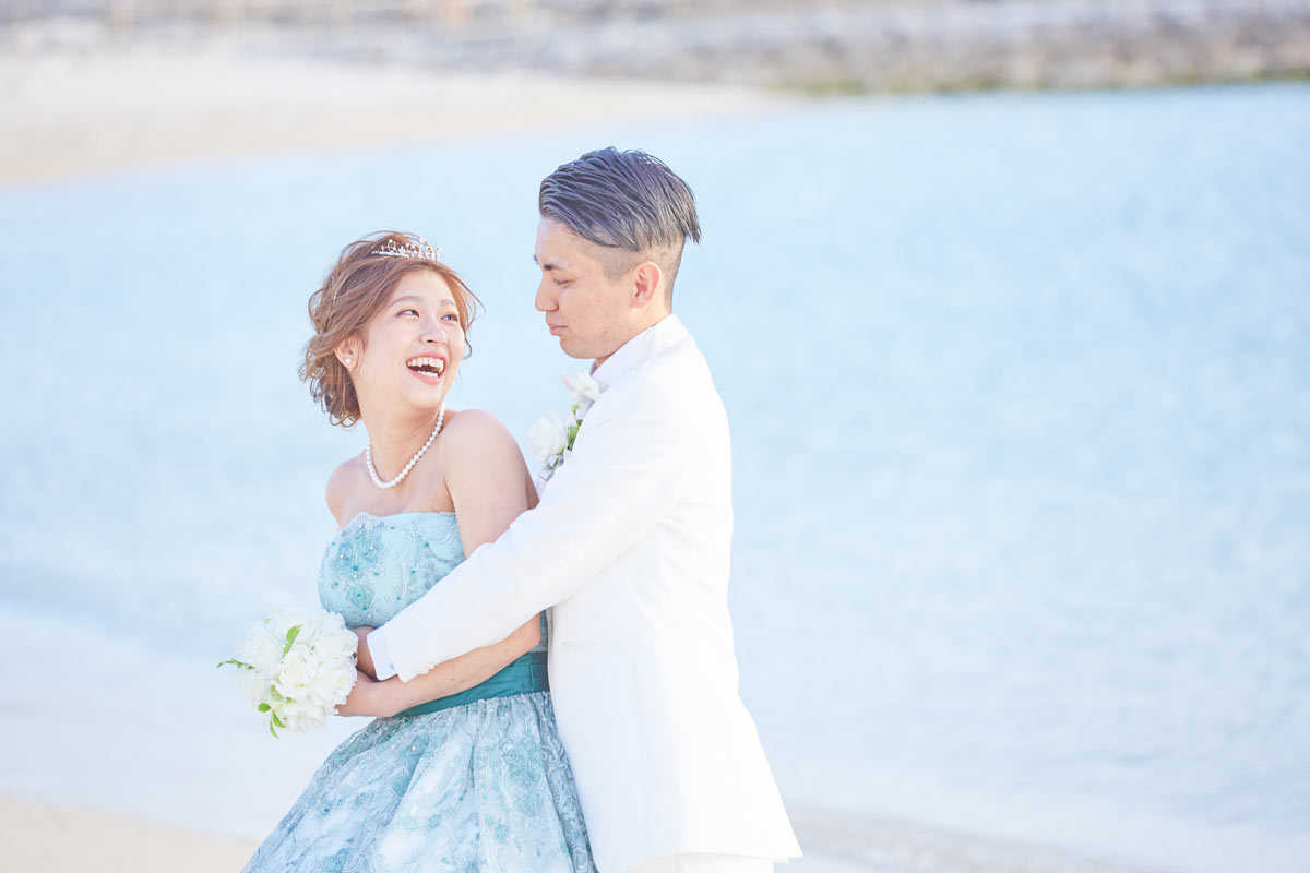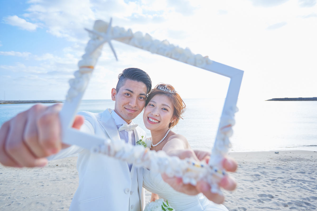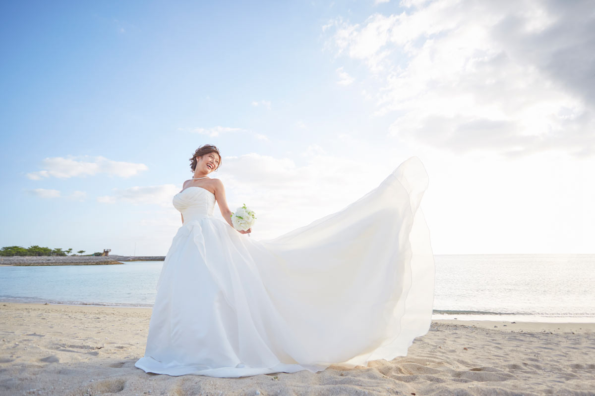 美々ビーチと大きな空が広がる白亜のチャペル。