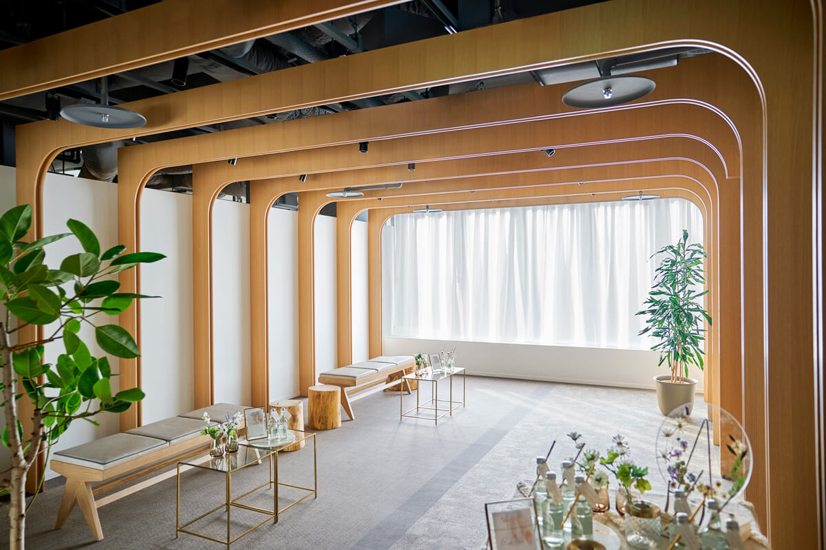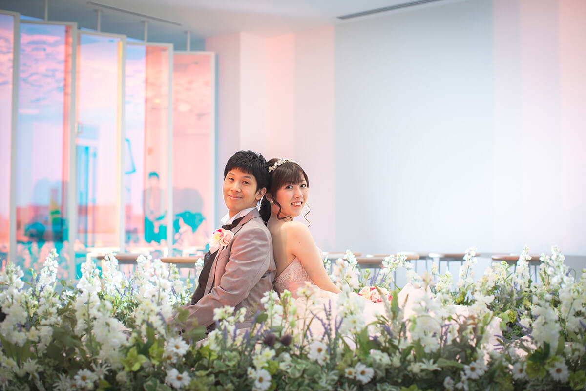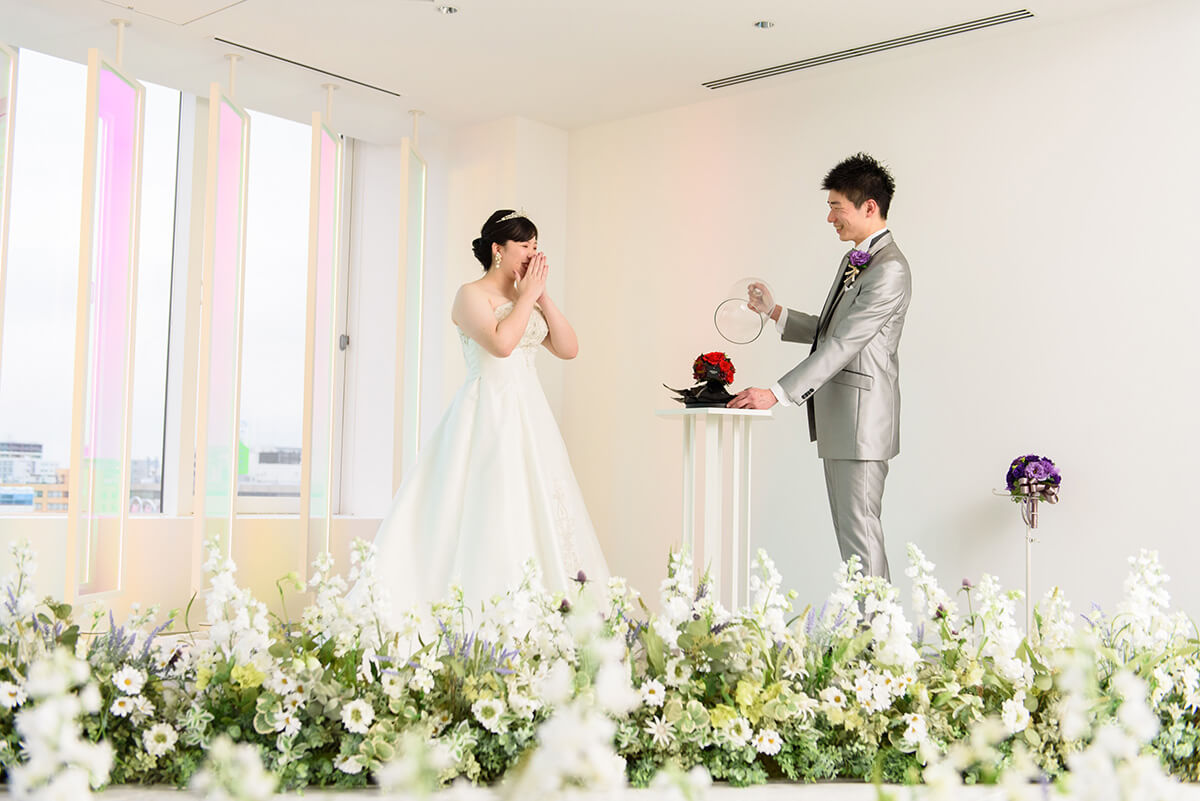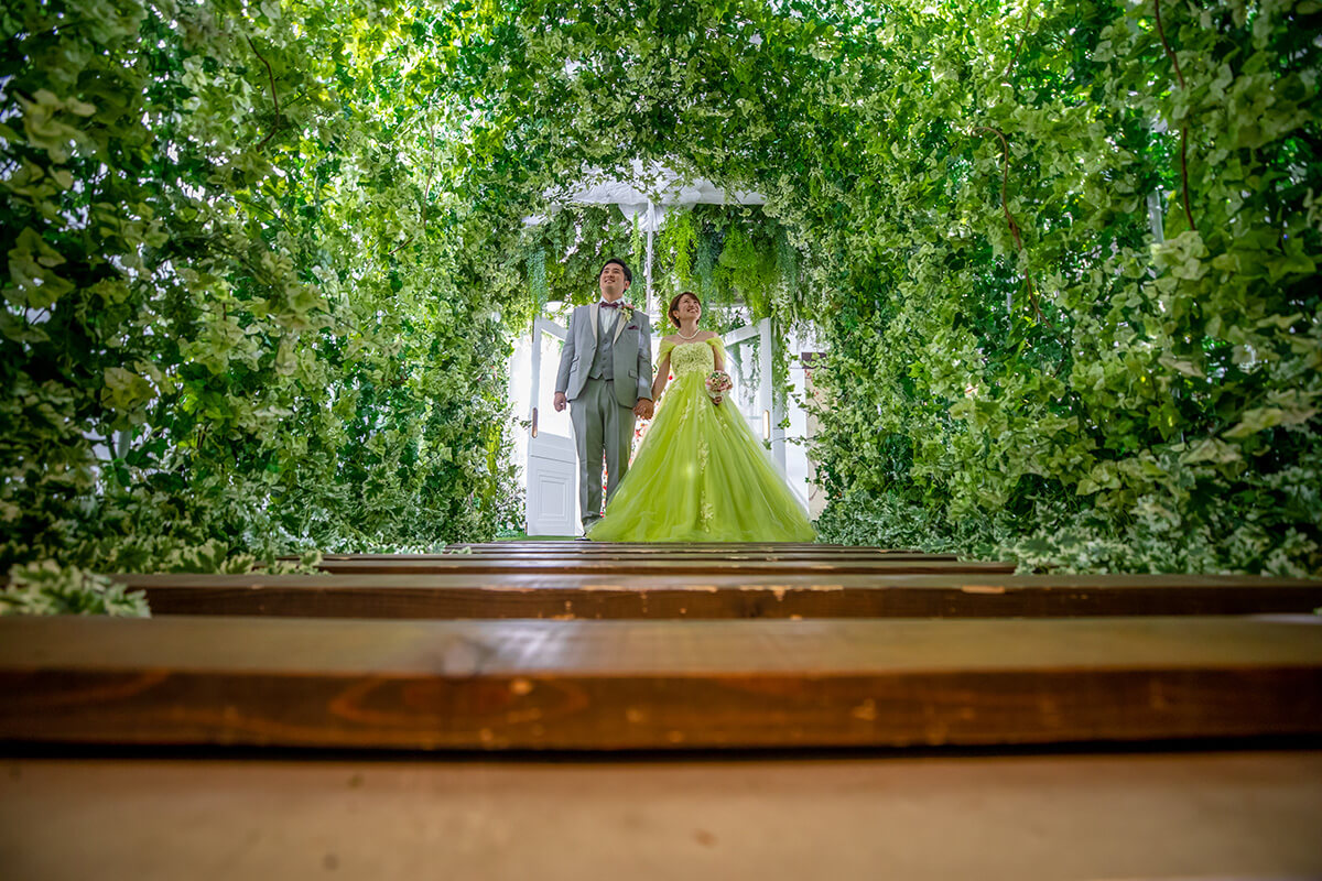 “プリズム”をコンセプトに空間全体を色と光が交わる幻想的なチャペル。