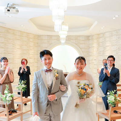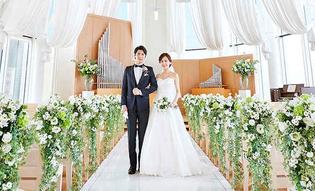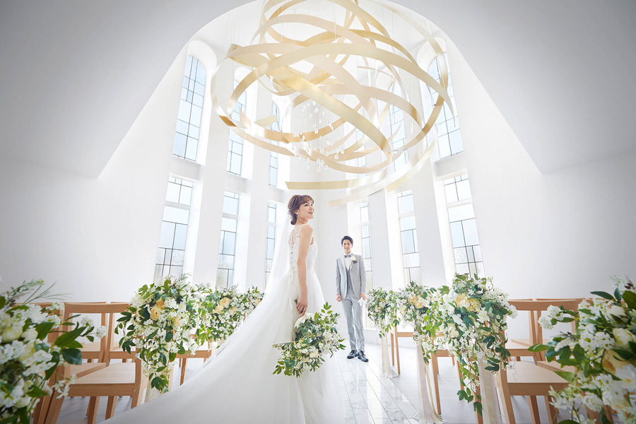 輝くチャペルや、腕を組み歩くバージンロード