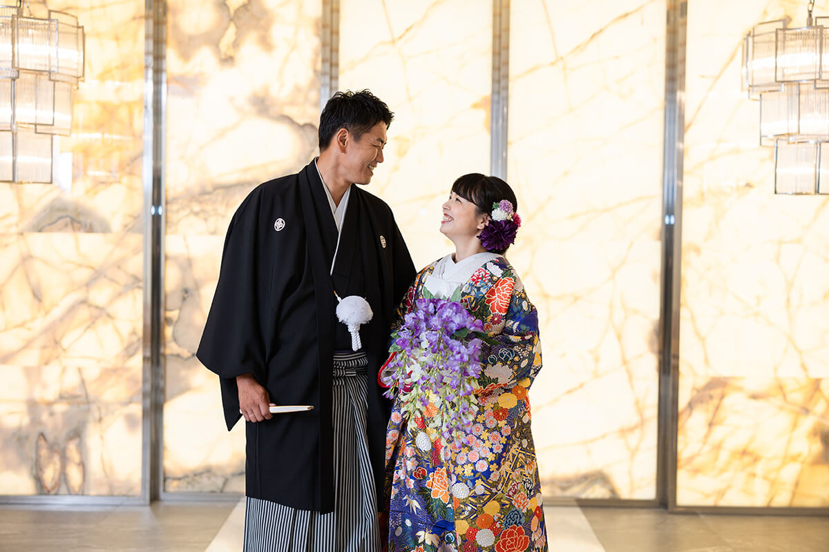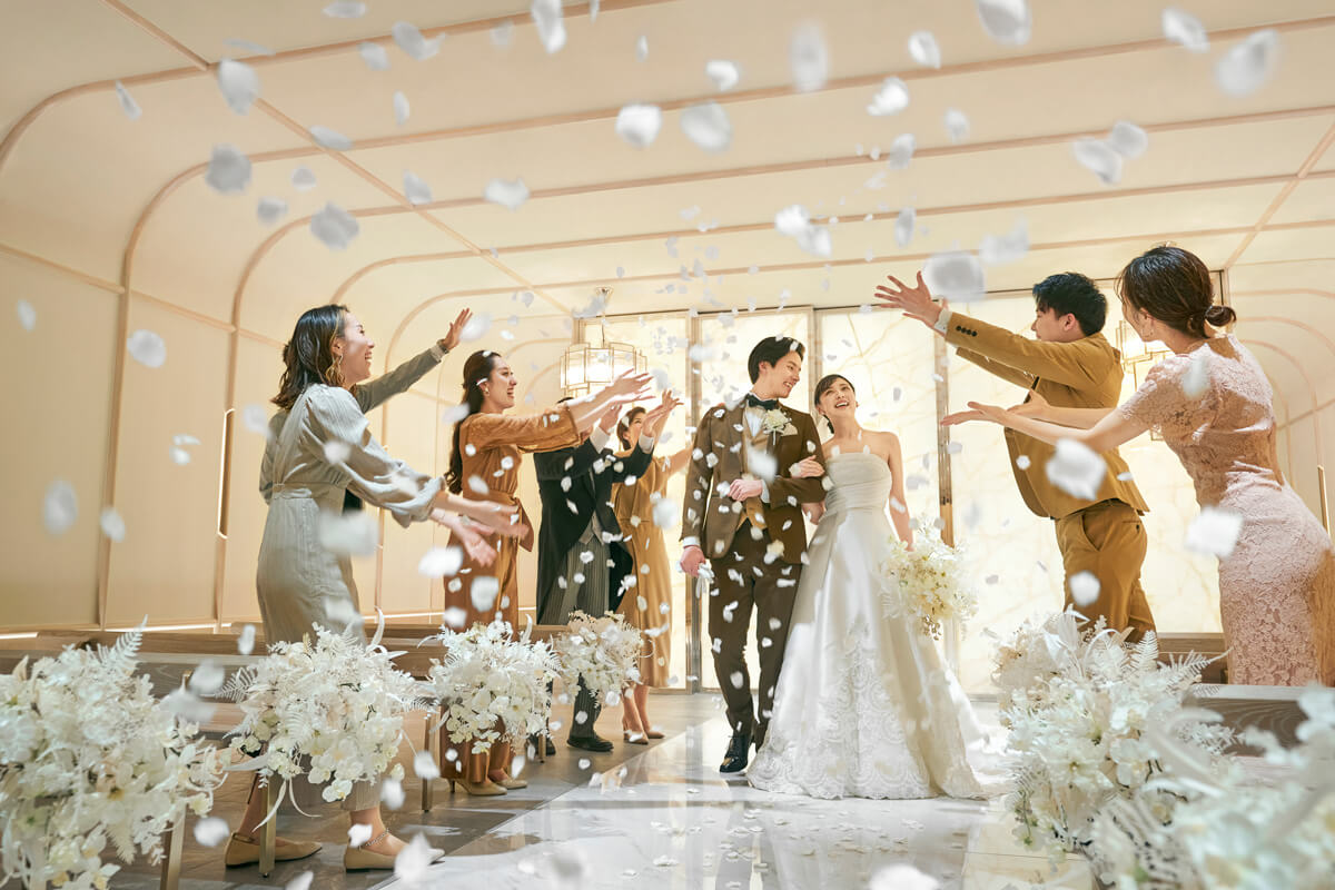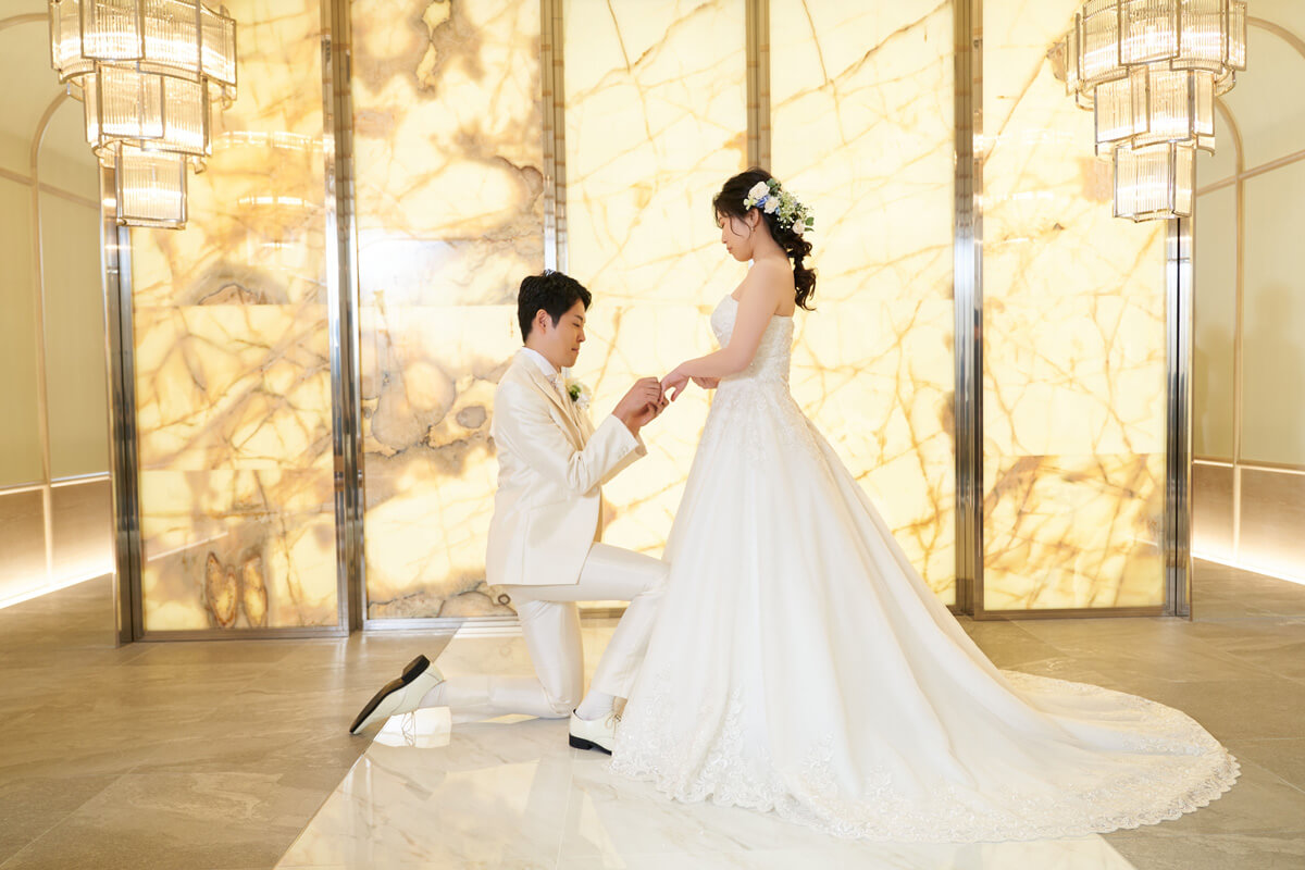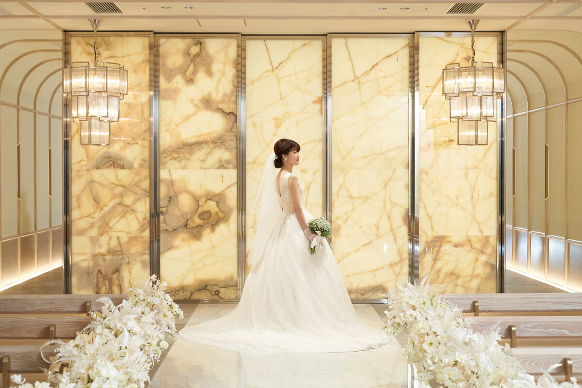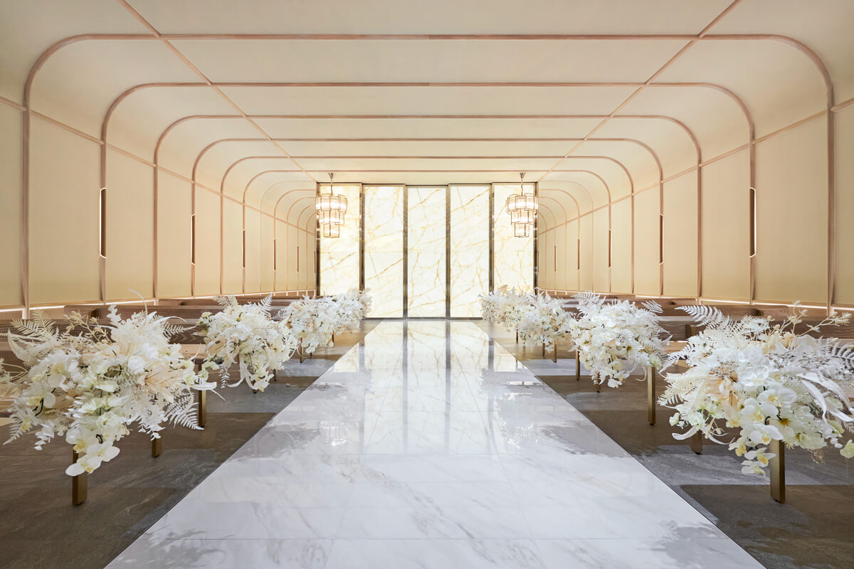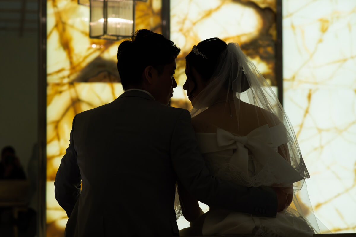 バージンロードの先のオニキスが海の宝石のように輝きます。