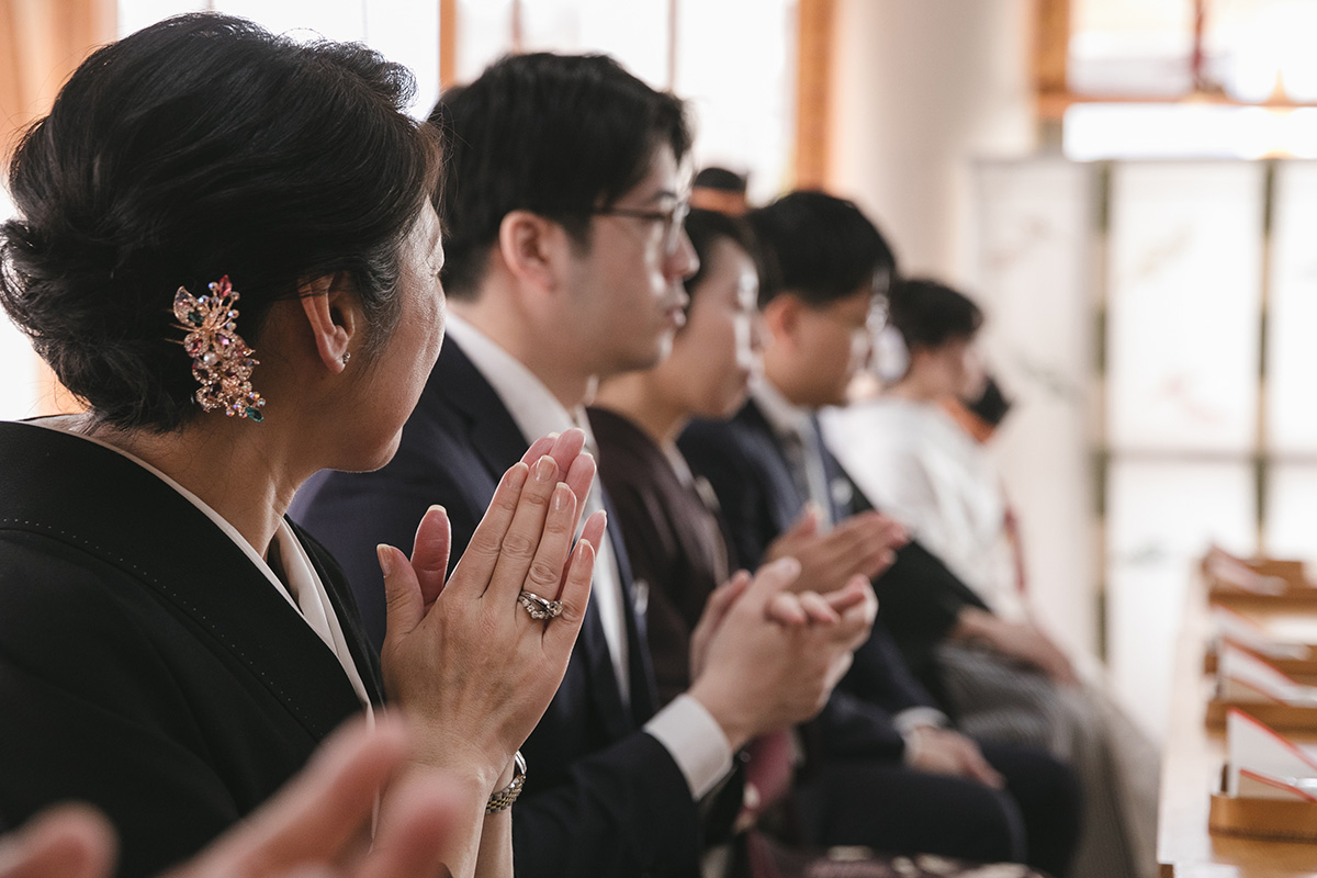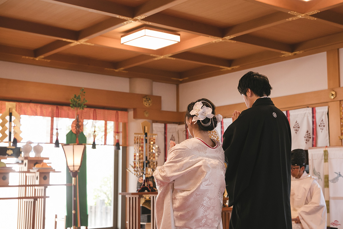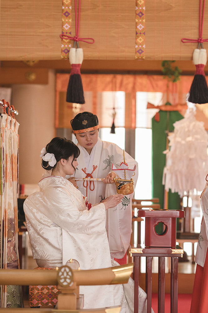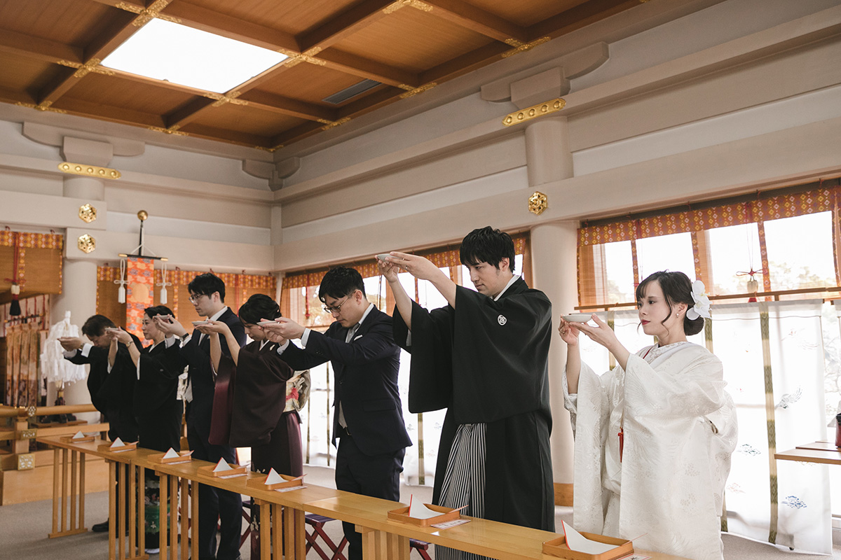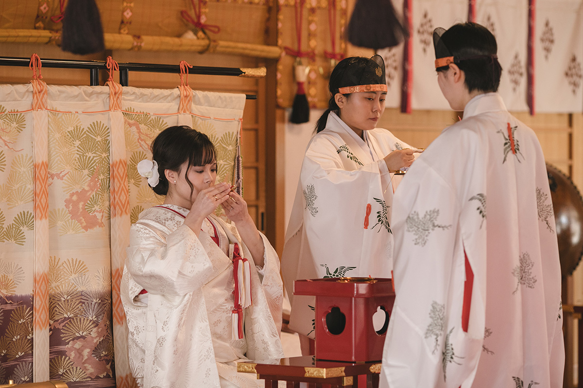 静寂のなか、神前にて。ふたりの想いが凛と結ばれていく瞬間。