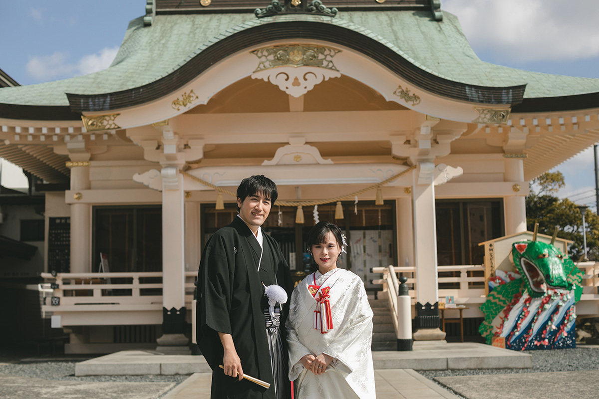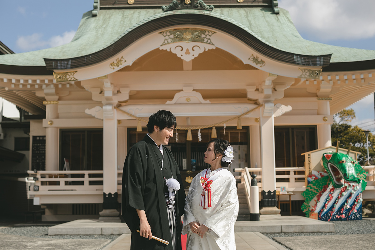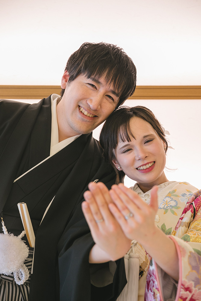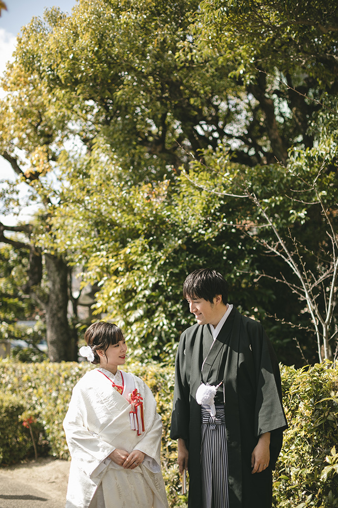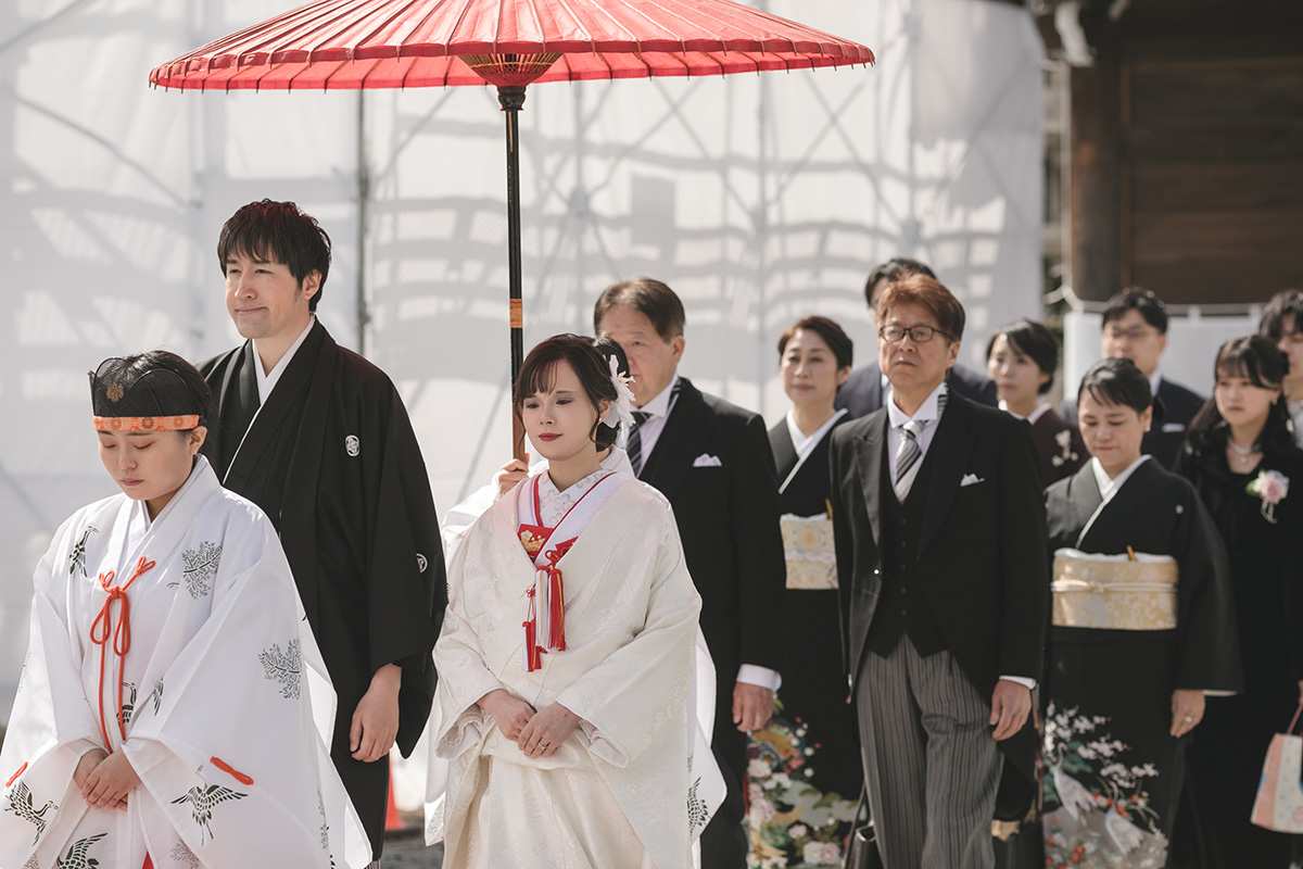 静寂のなか、神前にて。ふたりの想いが凛と結ばれていく瞬間。