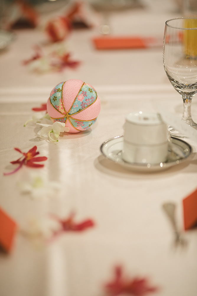 和のエッセンスが効いた、遊び心たっぷりのだるまケーキにゲストも笑顔。