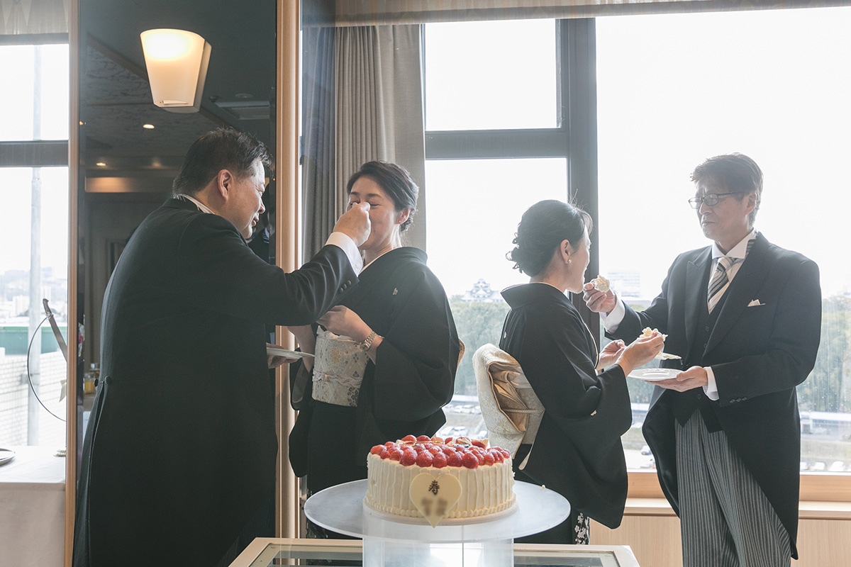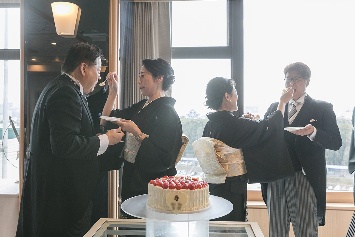 ご両親同士のケーキバイトタイム。思わず笑みがこぼれます。