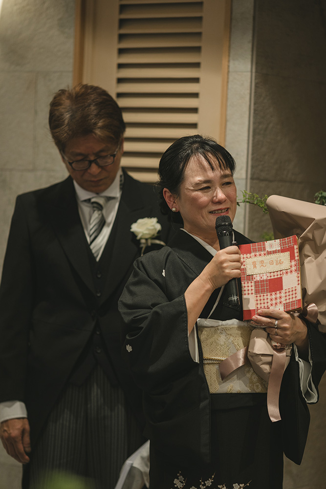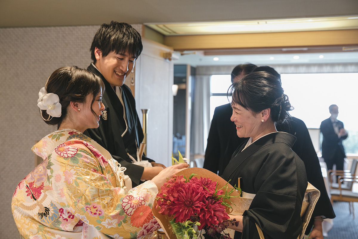 結びには大切に育ててくださったご両親様へ花束の贈呈を。