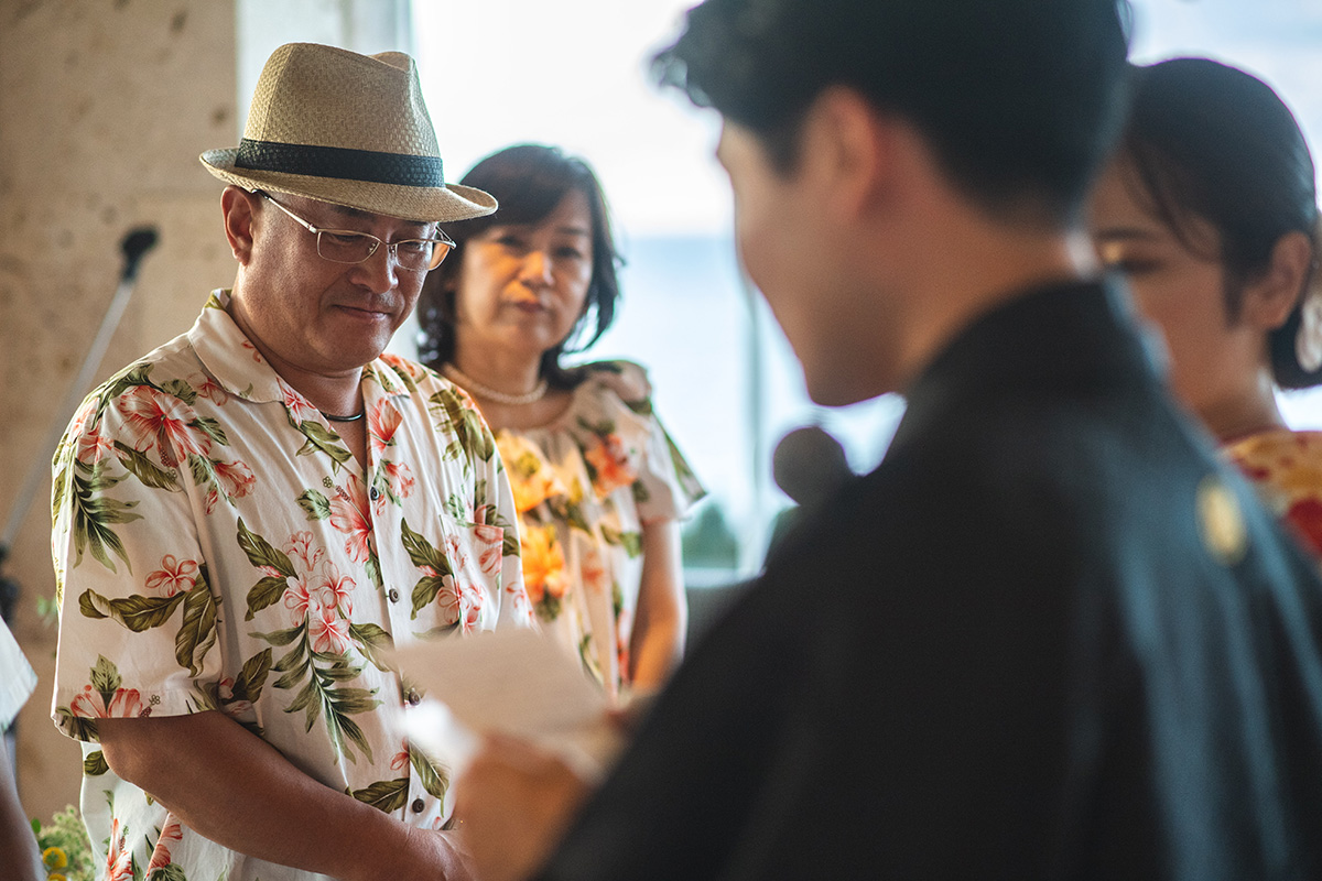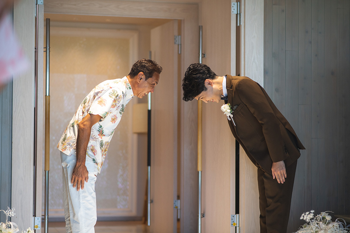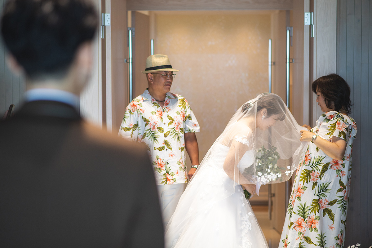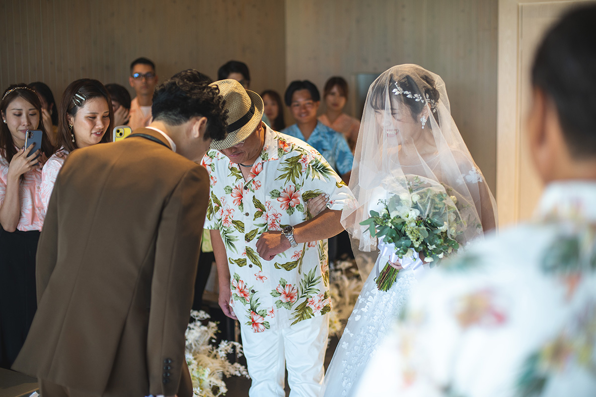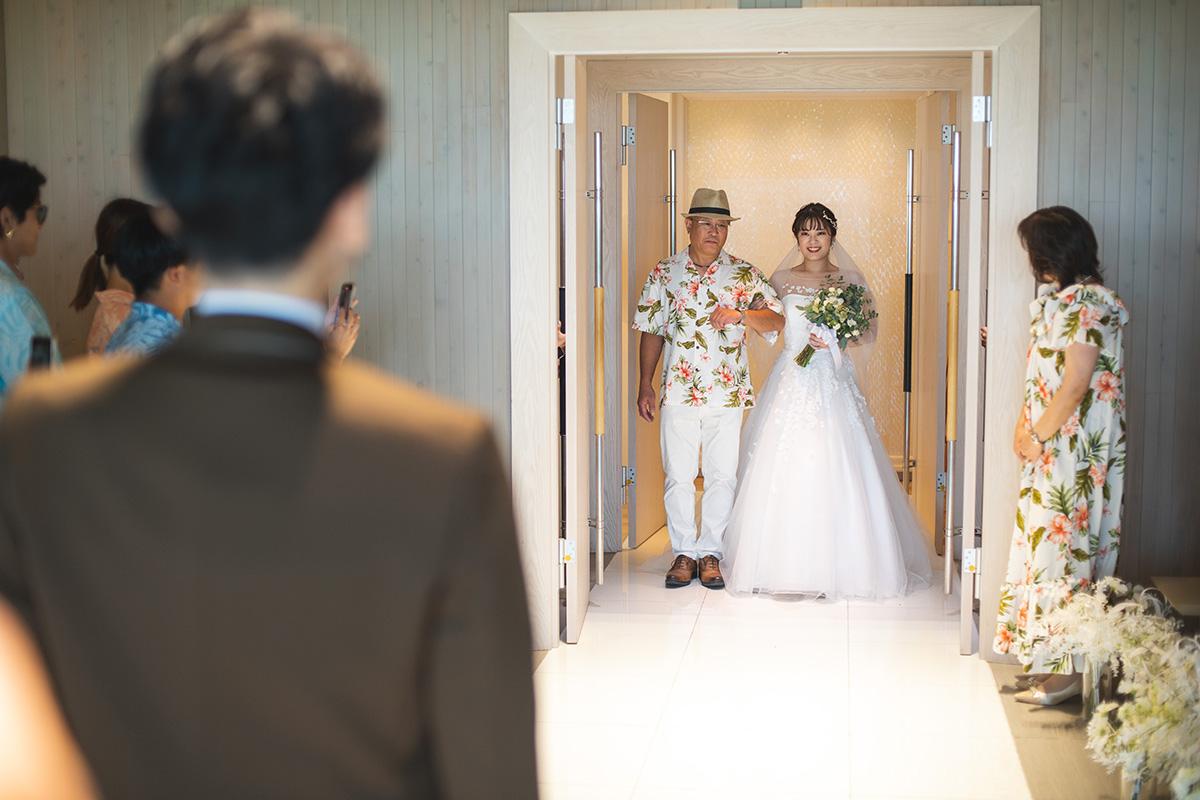 新婦様はお父様の手から新郎様の手へとバトンタッチ
