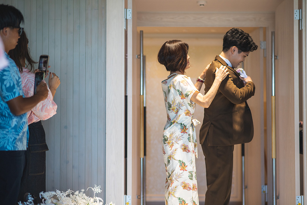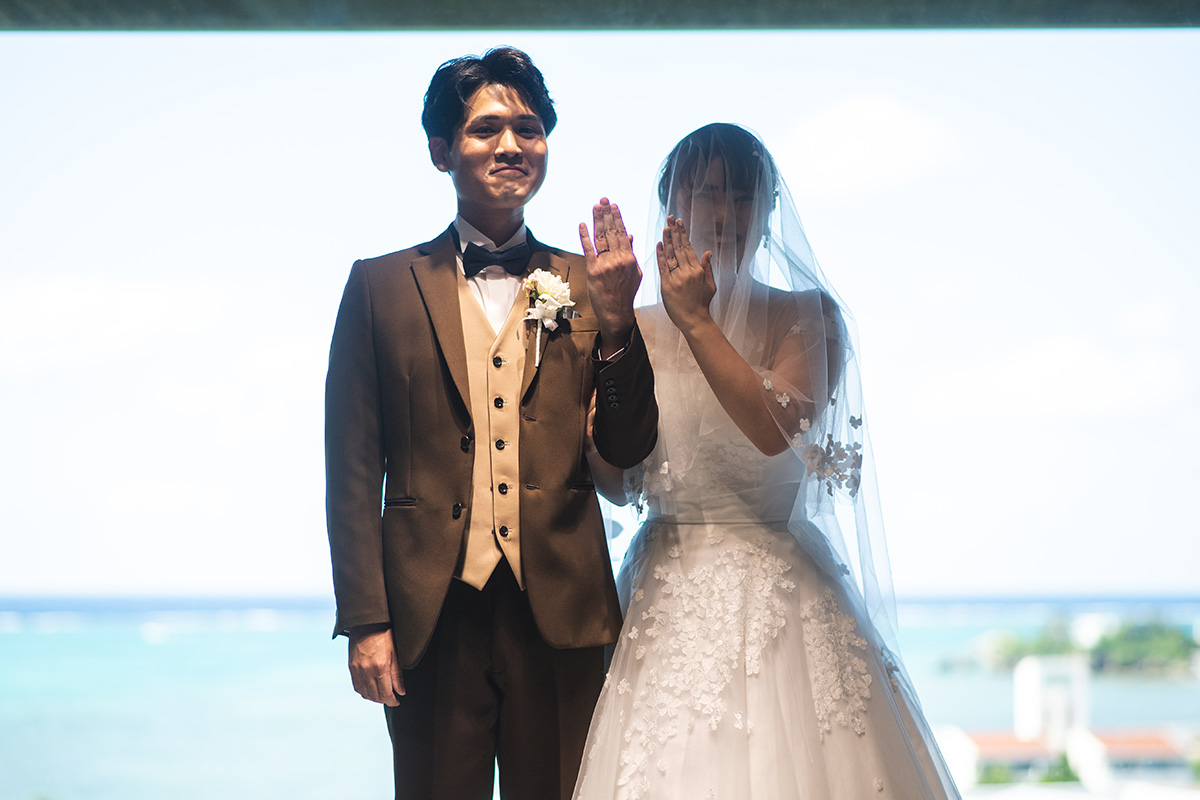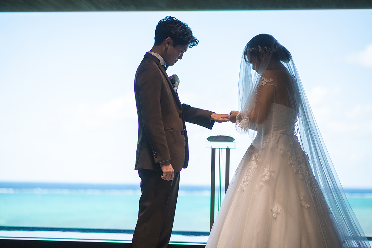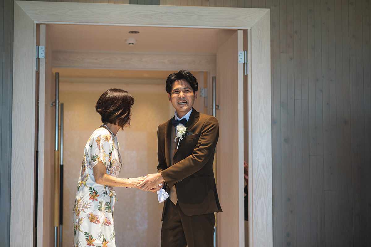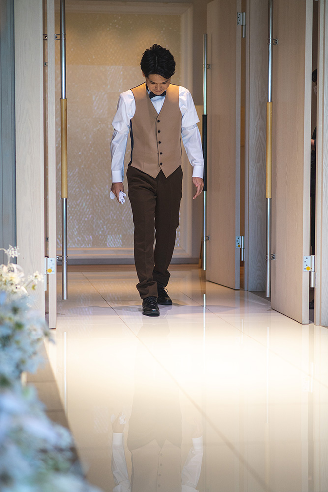新婦様はお父様の手から新郎様の手へとバトンタッチ