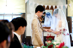 柔らかなチャペルでの挙式は、ふたりを自然体の表情に変え、挙式に参加したゲストも一体感とともにアットホームな雰囲気に変わります。正統派のキリスト教式も、自分たちらしい人前式も。