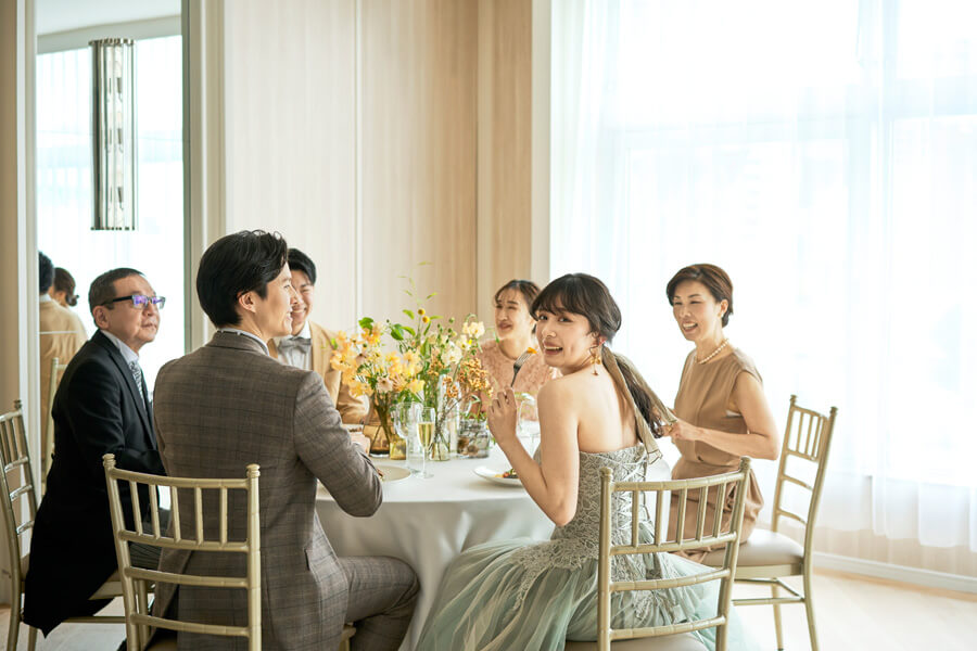 撮影後にドレスを着たまま会食会場に移動できます。小さな結婚式に併設された会場や近隣の提携レストラン・料亭のご紹介も行っています。フォトウェディングはおふたりだけで、そのあとに親族やゲストに晴れ姿をお披露目するのも◎