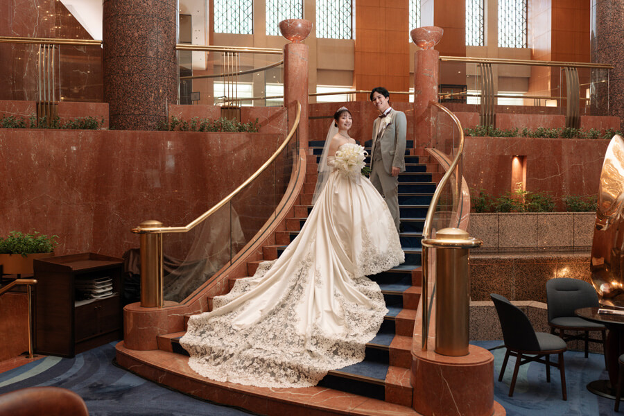 花嫁様をもっとも美しく彩り、演出する衣装。海外の有名なブランドのインポートドレスも直接海外まで買い付けに行き、ご用意しております。