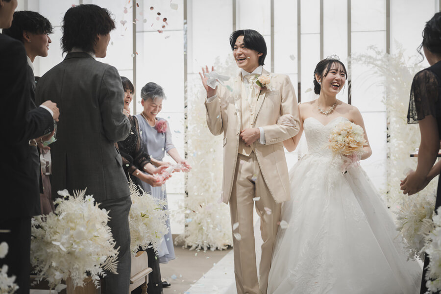 チャペルでケーキカットができると思ってなかったし、オーバーカラードレスという形でお色直しもできて、前撮りで和装も着れて本当に大満足です!