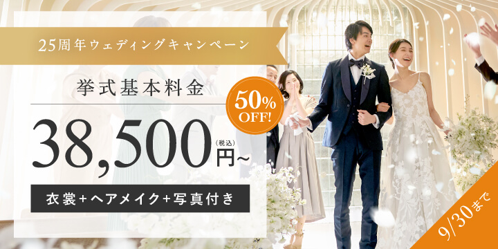 挙式料50%OFF (2025年9月〜2026年2月末に挙式予定の方)