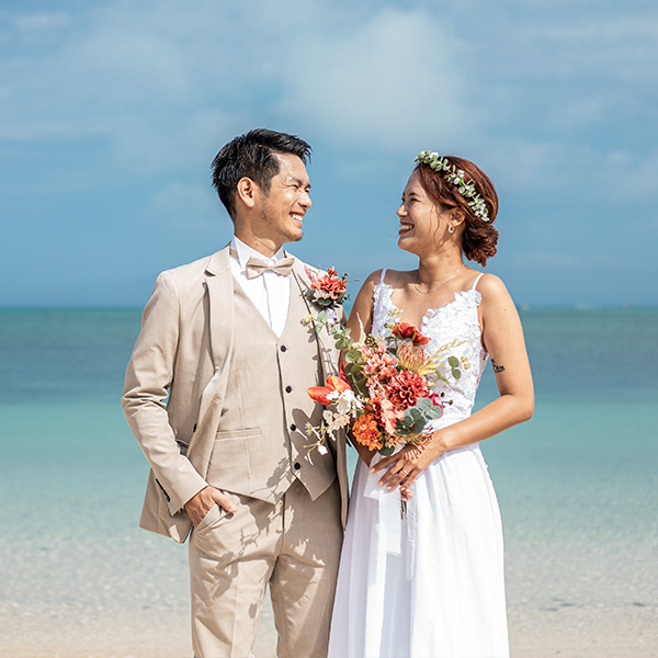 小さな結婚式の挙式プランに、挙式撮影(200カット)+ビーチ撮影(80カット)がセットに。沖縄での特別な一日をしっかりと写真に残したい方におすすめです。