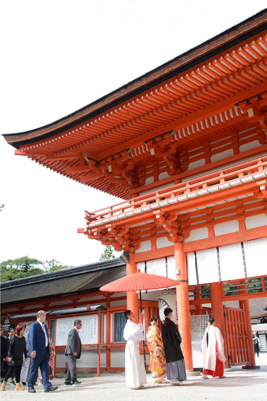 厳粛な空気感の中、風情ある景色に雅楽の演奏など神社挙式ならではの演出は、ゲストから見ても新鮮に映るもの。緊張感のある厳かな雰囲気は両親や年配の親族等に受け入れられやすく好評です。 -