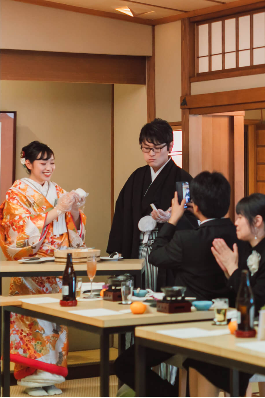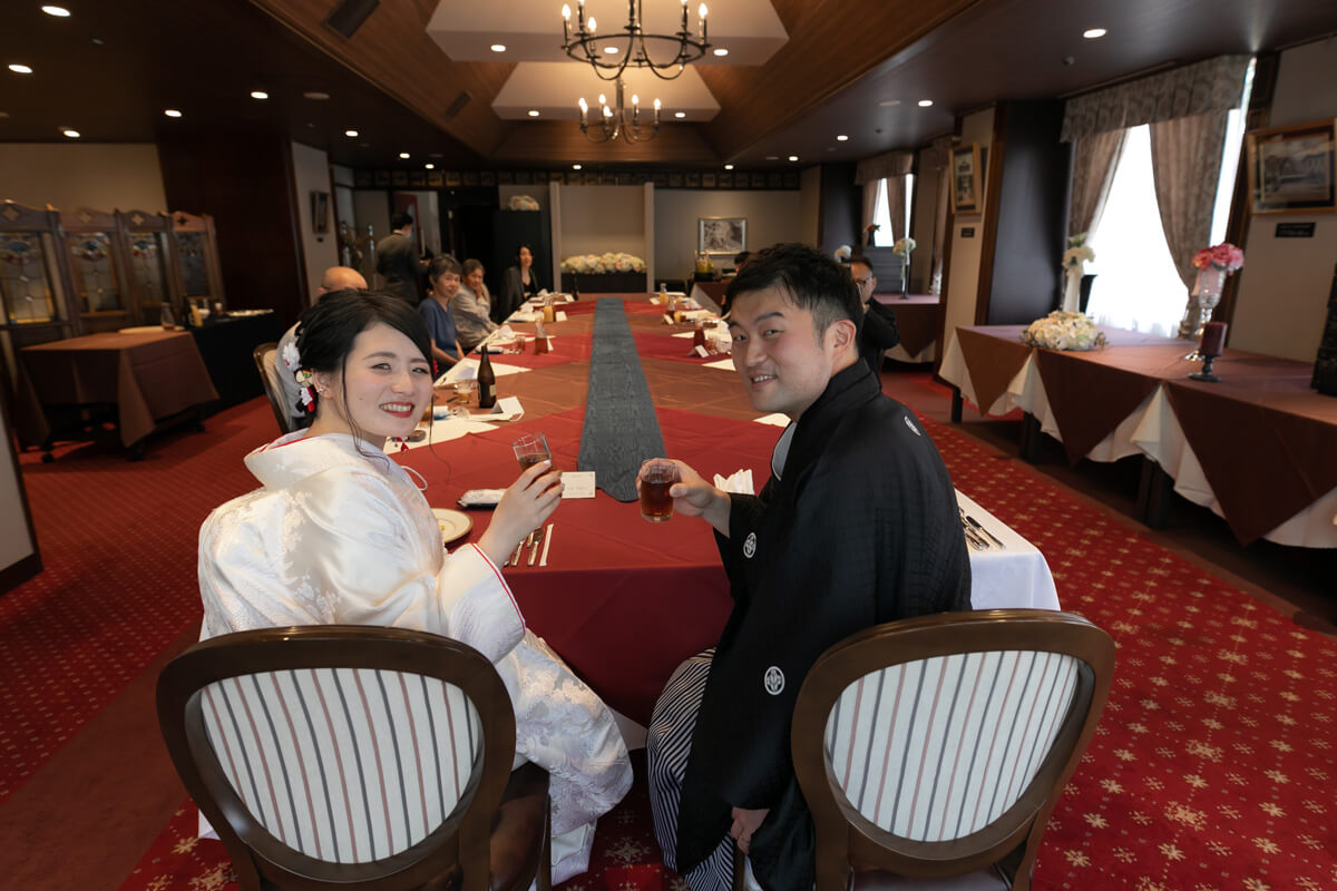 和の会食も和装で結婚式をした後は、小さな結婚式が提携する会食会場にてご会食を行っていただけます。和装にぴったりの会場をご紹介させていただきますので、和テイストを取り入れた演出をお楽しみください。特別な日に、ご家族や親しい友人や知人と絆を深めるご会食はいかがでしょうか?