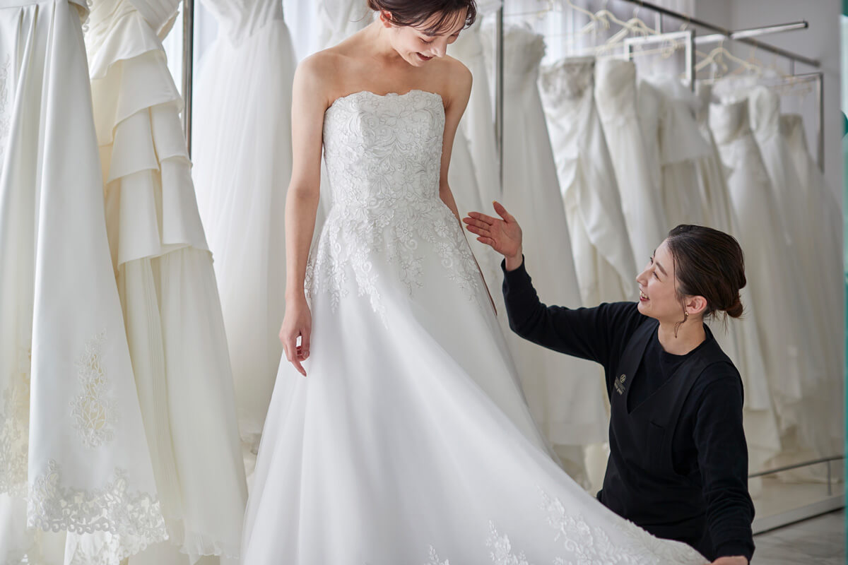 現地にドレスサロンをご用意しております。全国24拠点の最寄りサロンにてご試着いただきドレスを選んでいただければ、当日、同じものをご用意させていただきますので、手ぶらでお越しいただくことが可能です。
