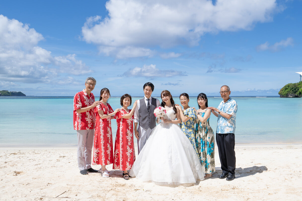 家族や親しい友人を中心に、日本からゲストを6名から10名ほど、ご招待している方が多いです。グアムは、東京から3時間半と近くの海外リゾートなのでご招待しやすいこともメリットです。