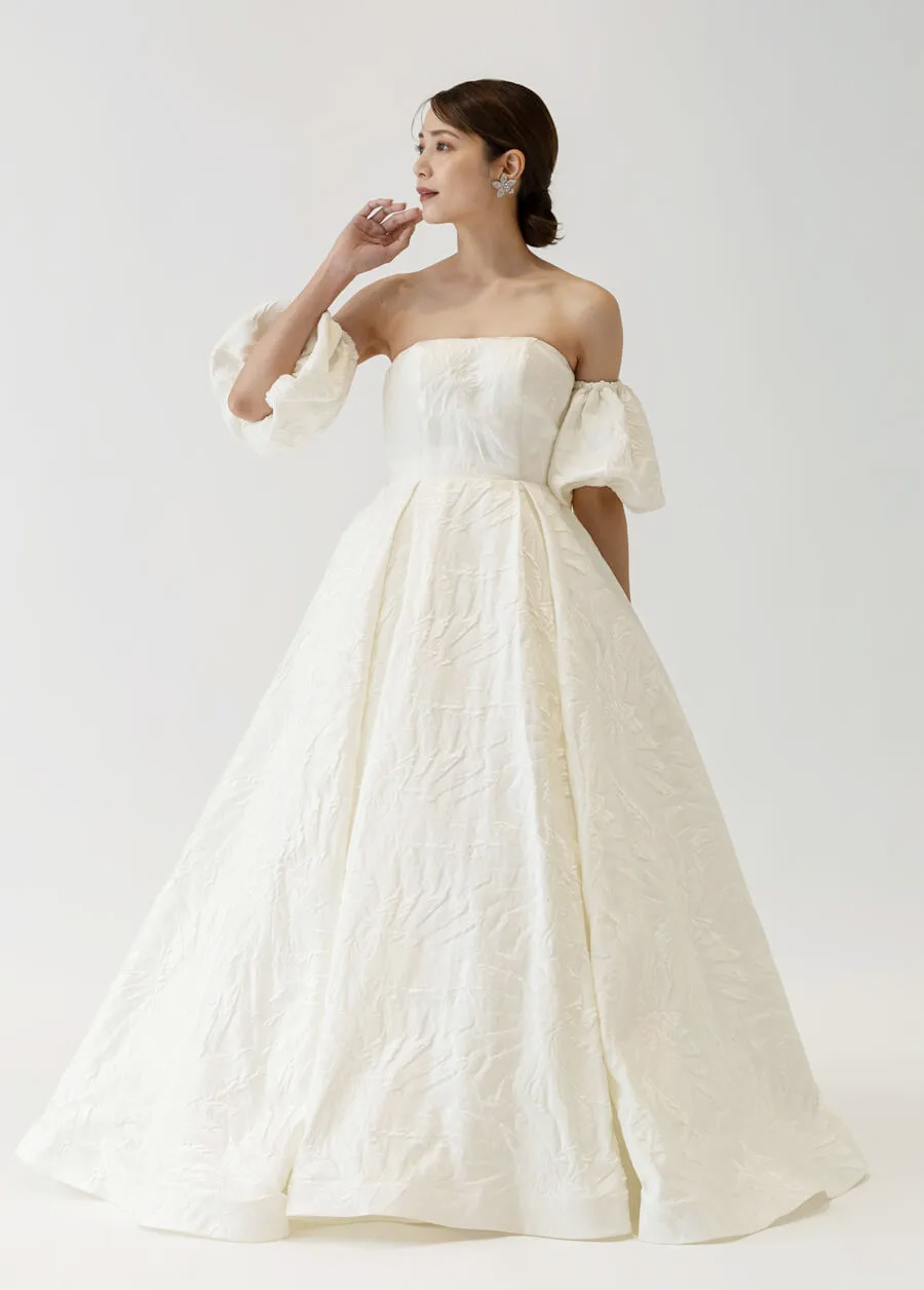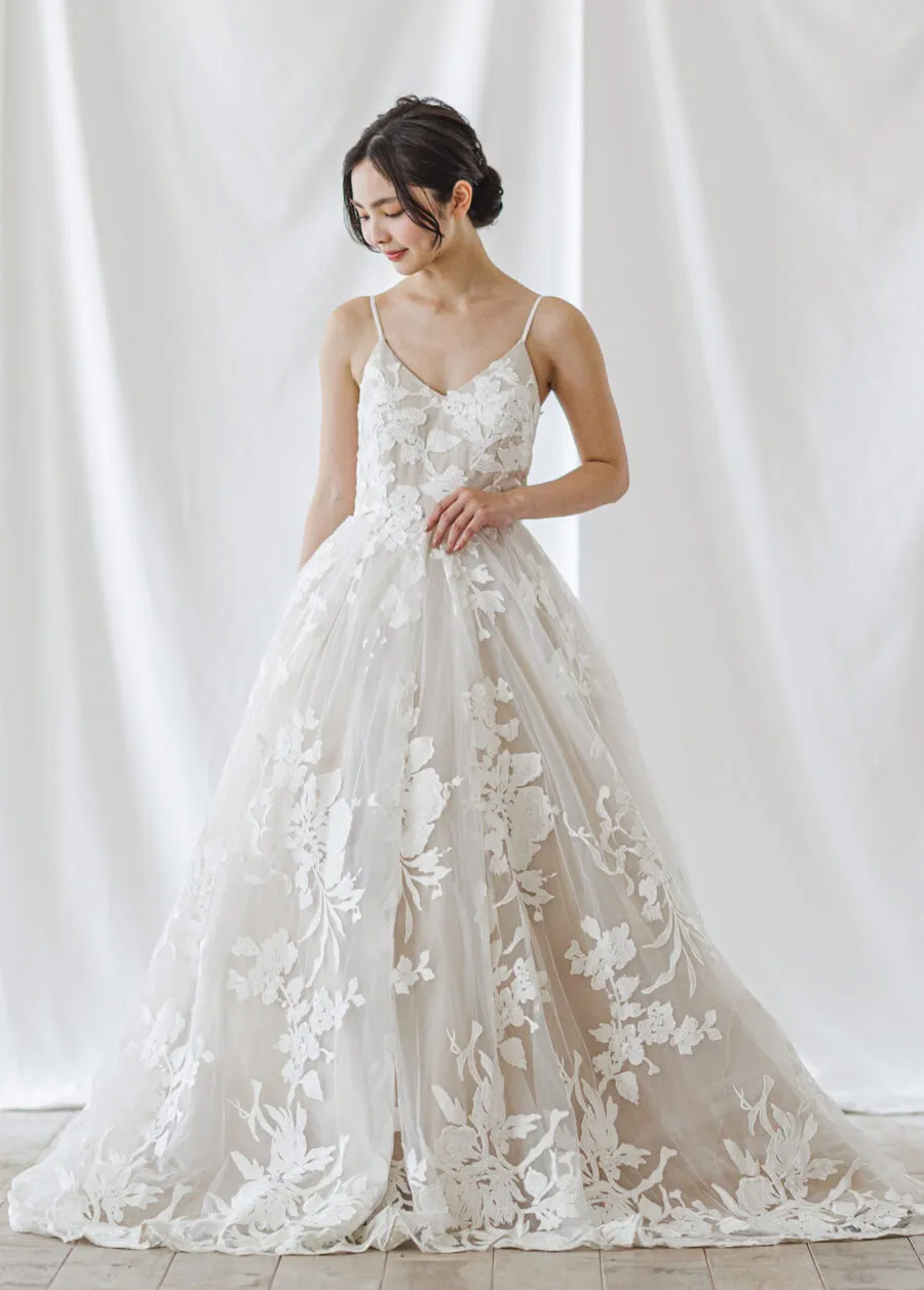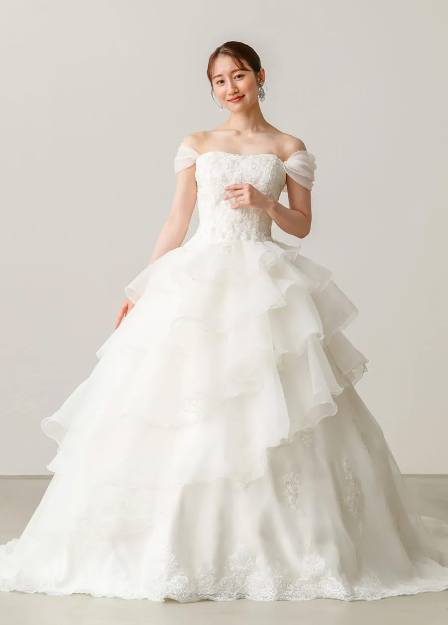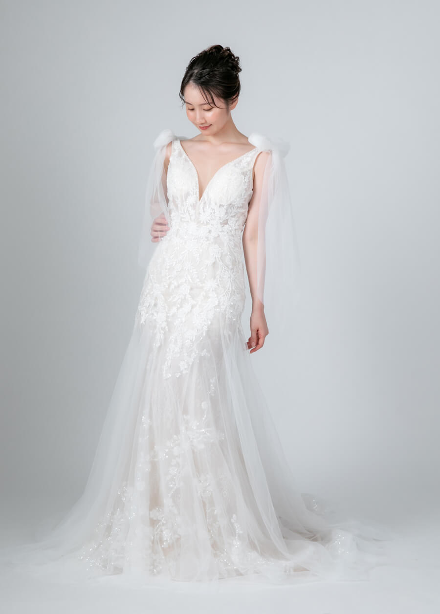 花嫁様をもっとも美しく彩り、演出する衣装。海外の有名なブランドのインポートドレスも直接海外まで買い付けに行き、ご用意しております。