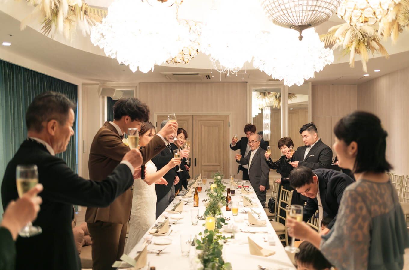 少人数挙式の後は、「家族や親族、または友達だけで」など少人数でアットホームなお食事会・