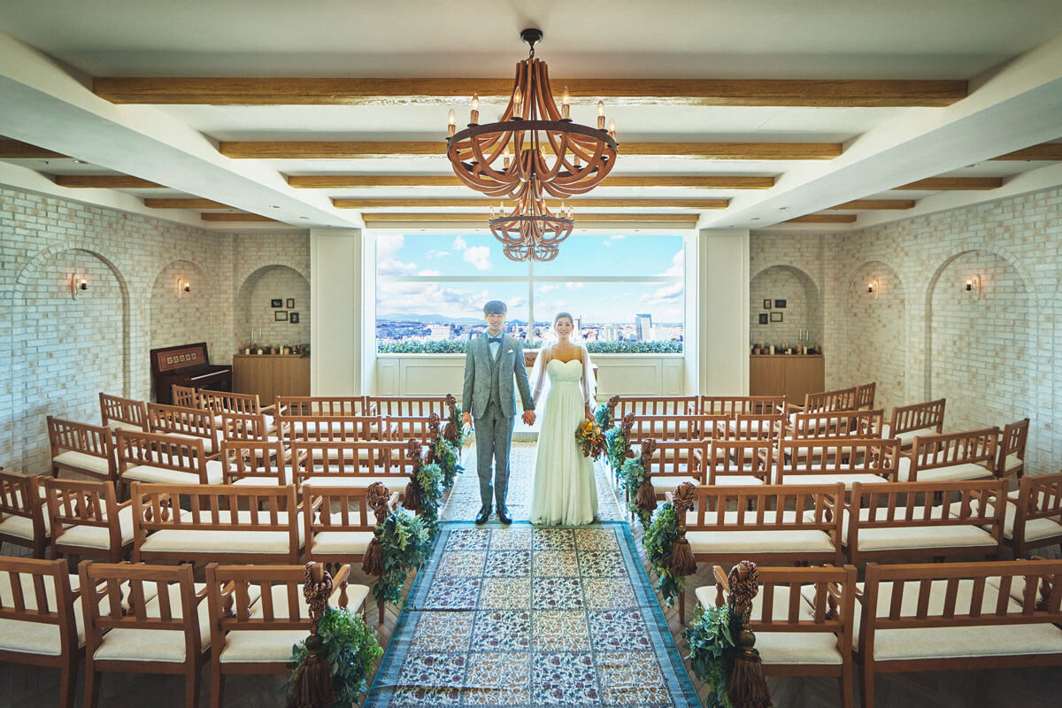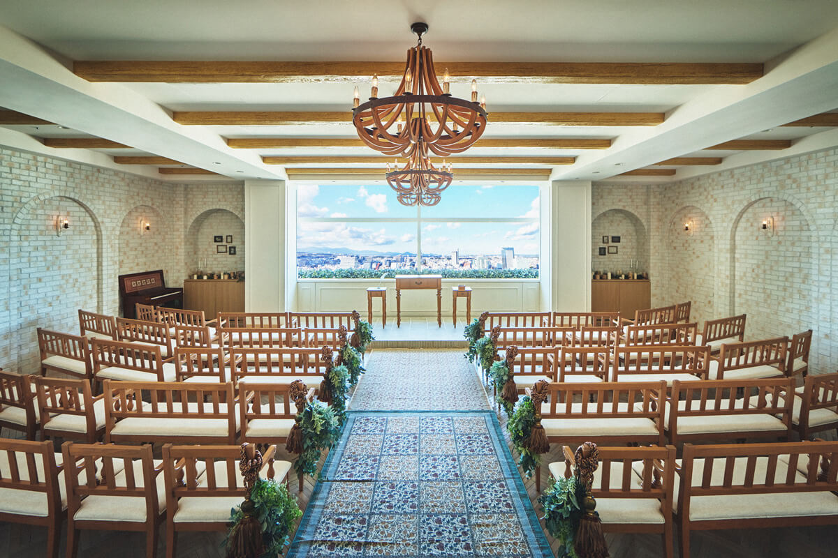 28階から仙台の街並みを一望。 アンティークな照明や家具、細部にまでこだわり抜いて創られた邸宅内は、ナチュラルでどこか懐かしい雰囲気。 柔らかなチャペルでの挙式は、ふたりを自然体の表情に変え、挙式に参加したゲストも一体感とともにアットホームな雰囲気に変わります。正統派のキリスト教式も、自分たちらしい人前式も。 ふたりの自宅にゲストをお招きするような、アットホームなウェディングが実現します。