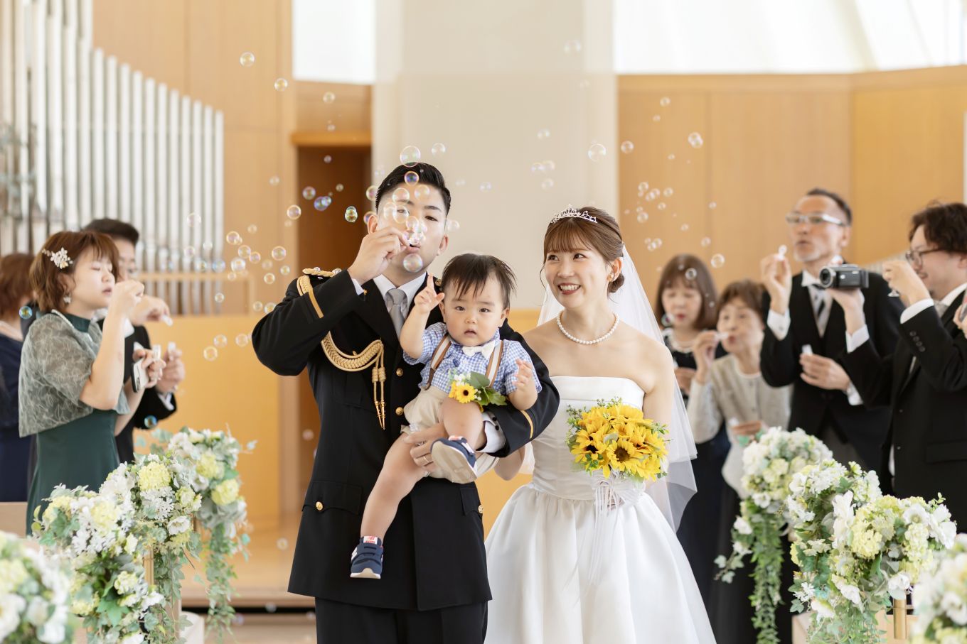 お子様と一緒に結婚式を迎えられた新郎新婦様
