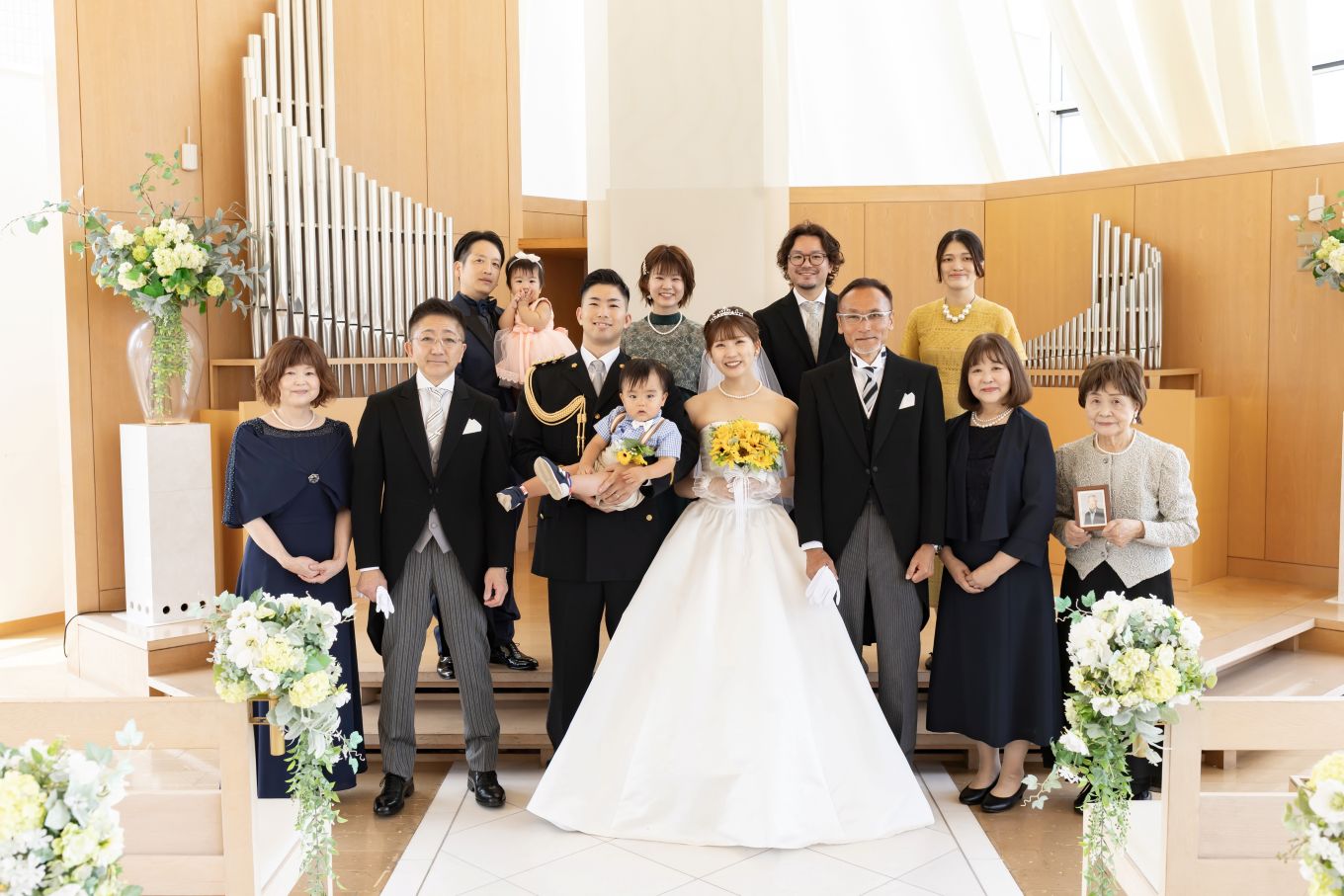 千葉チャペルで、お子様と親族様含め15名様で結婚式をされたお客様。 新郎様は職場の制服をお持込み頂き、アットホーム空間で結婚式を行いました。 退場の際にはシャボン玉セレモニーを行い、ゲスト様も楽しんで頂ける1日となりました。