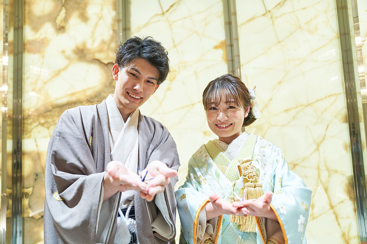 横浜チャペルで和装結婚式を挙げられたお客様。 ケーキカットの瞬間には、笑顔が絶えず、その幸せな瞬間が会場に広がりました。さらに、折り鶴シャワーなど、和の雰囲気が漂うオリジナルな結婚式となりました。 挙式の前後にロケーションフォト撮影も可能です。この特別な日を美しい写真に残すことができます。