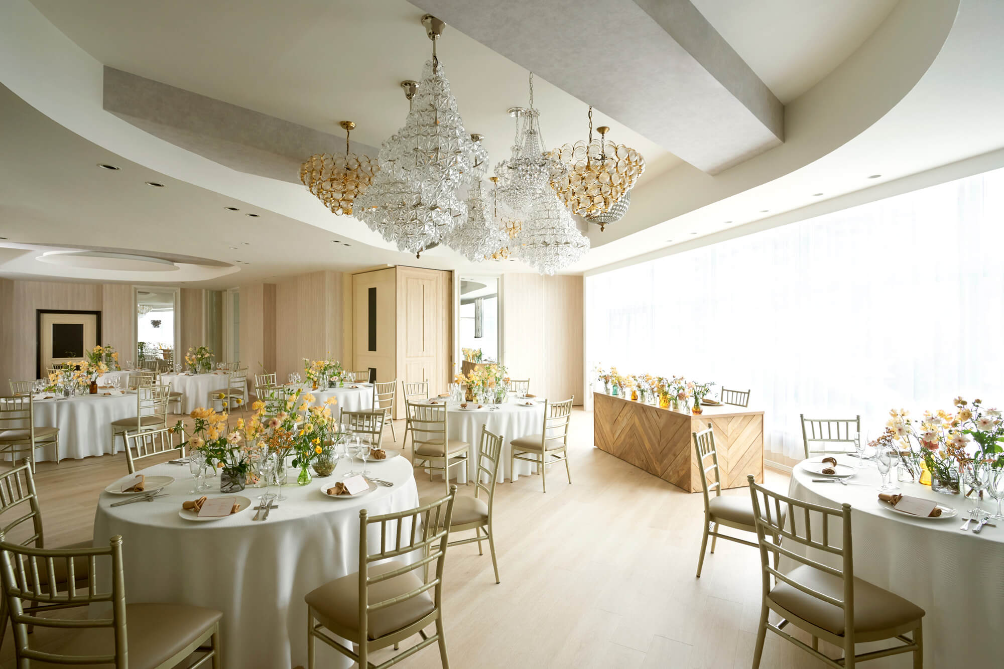 食事会と披露宴の線引きは明確にはありませんが、食事会に加えて、演出アイテムやイベント(テーブル装花、ケーキ入刀、両家親への花束や記念品贈呈、司会者、映像演出など)を盛り込むと、披露宴と言えそうです。